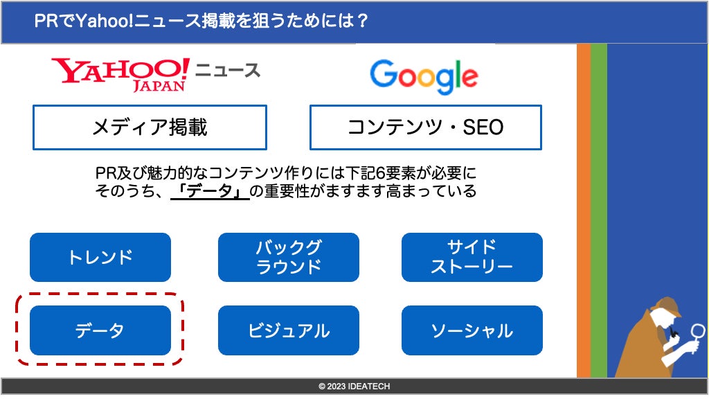 ワンストップでリサーチデータマーケティングを実現する「リサピー®️」(https://ideatech.jp/service/research-pr)を運営する株式会社IDEATECH(本社:東京都港区、代表取締役社長:石川友夫)は、PR・マーケティングご担当者様の「調査(リサーチ)」および「PR」への理解促進と支援を目的にした、「Yahoo!ニュース掲載調査事例(2023年下半期)ガイド」を無料公開しました。