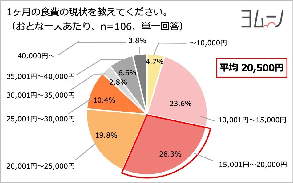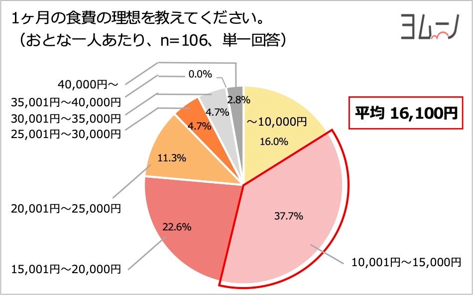 - 一ヶ月の食費(おとな一人あたり)の理想は平均16,100円、実態は平均20,500円