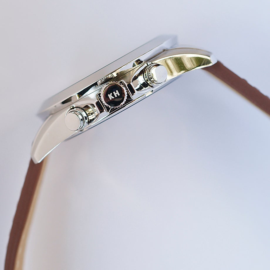 基本的なケースデザインは、本格的で伝統的なクロノグラフスタイル。