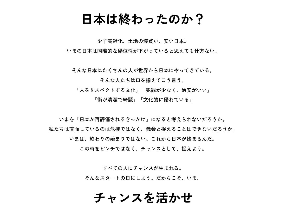 そして、日本を世界に推し進める大きなチャンスとなります。