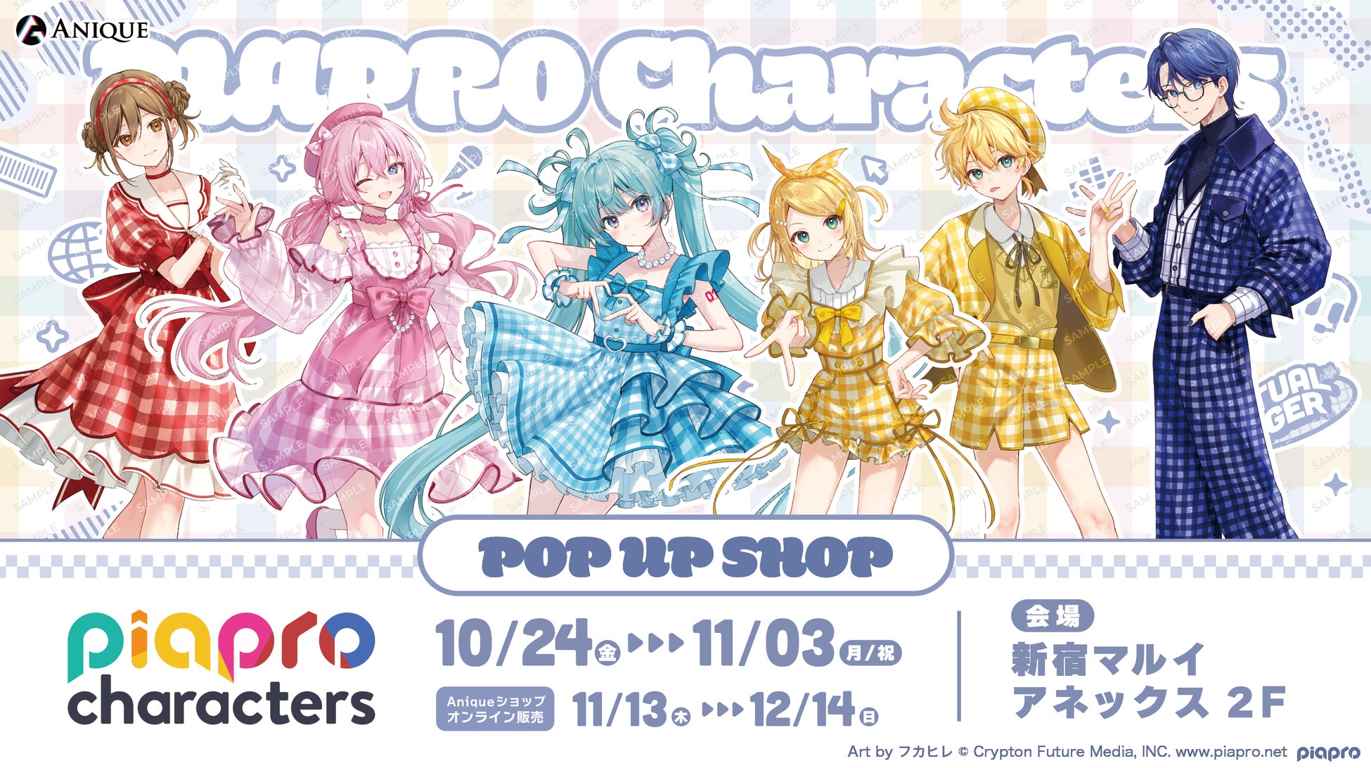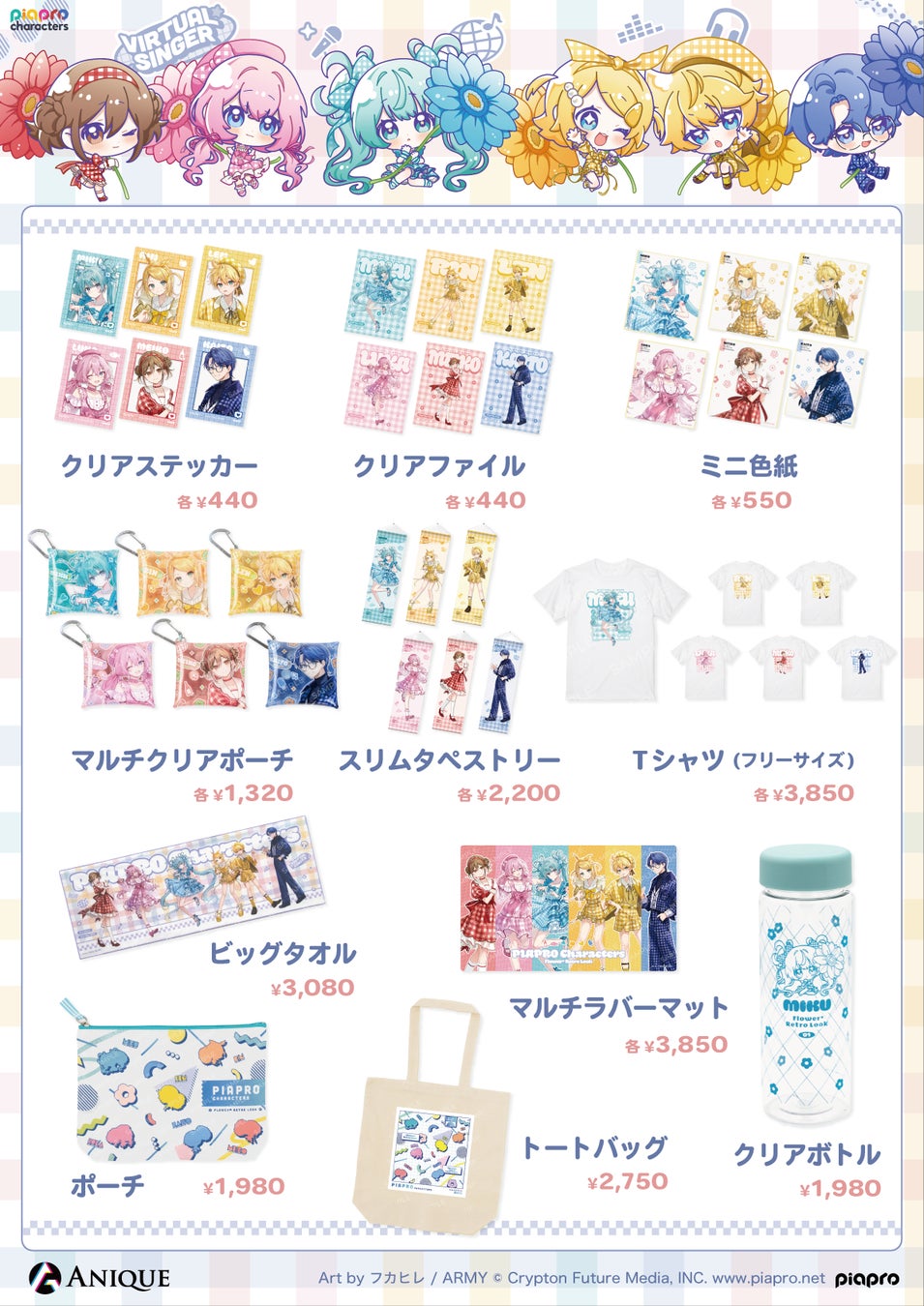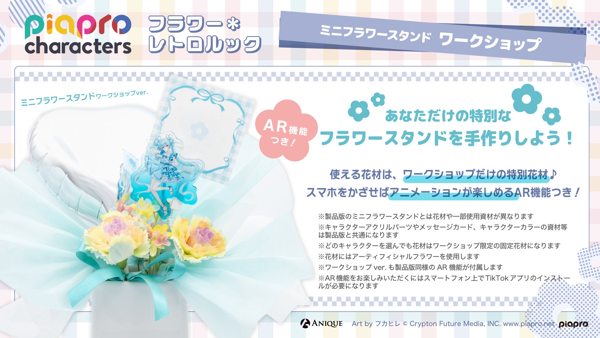 Anique株式会社(本社:東京都千代⽥区、代表取締役:笠井⾼秀)は、『ピアプロキャラクターズ』よ り、【フラワー*レトロルック】をテーマにした新規描き下ろしイラスト使⽤のカラフルなオリジナルグ ッズと、体験型ワークショップを楽しめるPOP UP SHOPを開催いたします。