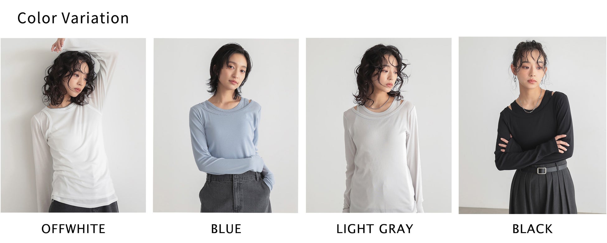 やわらかで少し透け感のある薄手のカットソーは、ロンTとタンクトップとセット。