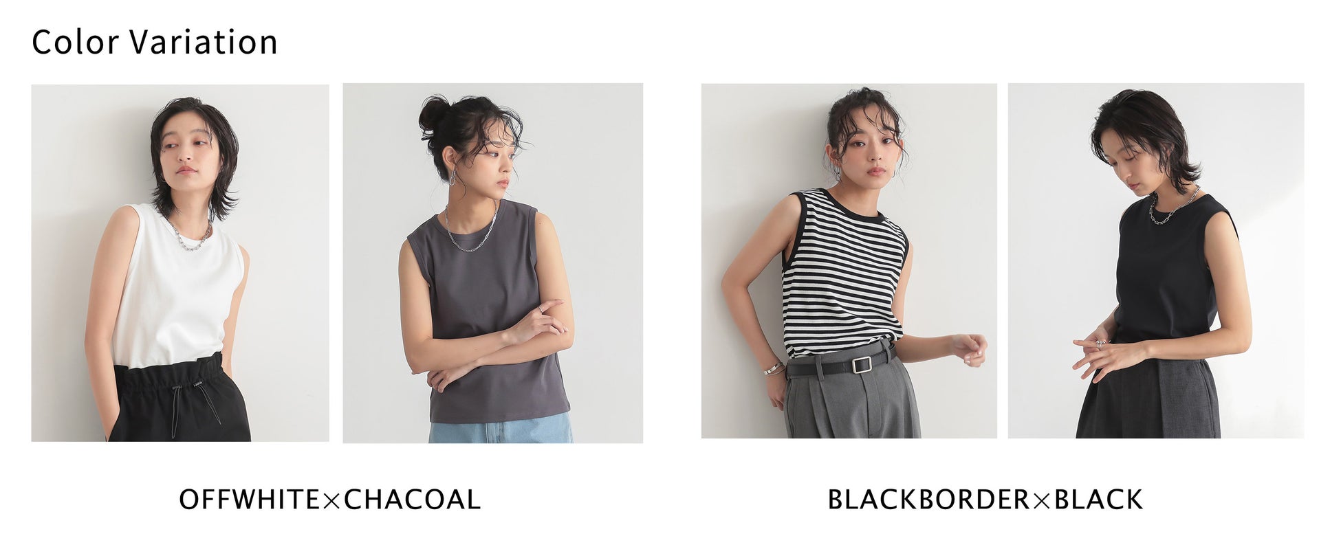 ベーシックに使えるノースリーブは、素材とカラー違いの2pセット。