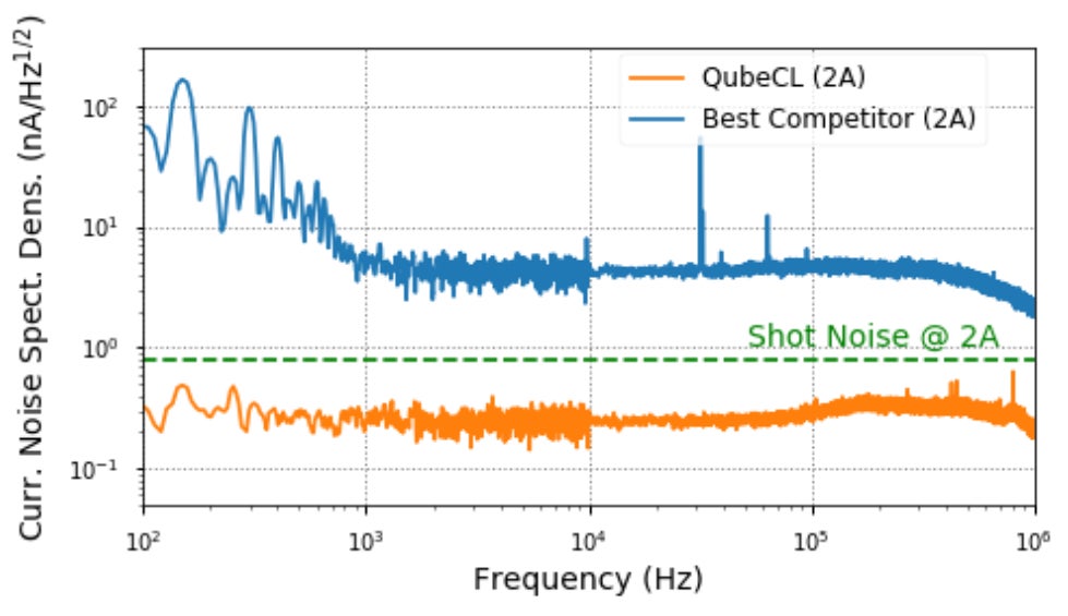 今回取り扱いを開始した「Qube」シリーズ(QubeCL/QubeDL)は、10 cm角の筐体内に超低ノイズ・高安定な電流源、周波数安定化機構、各種モジュール拡張性を備えたレーザーダイオード駆動用の多機能モジュールで、量子光学や精密計測に適した仕様となっています。同社が特許を取得した設計により、400 pA/√Hzの電流ノイズスペクトル密度を実現することで、電流ノイズによるレーザー発振スペクトル幅の広がりを抑え、極めて狭い線幅と高い位相・周波数安定性による狭線幅レーザーの安定動作を支援します。