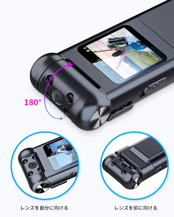 ・レンズは180°無段階回転可能、撮影の角度を自由に調整可能!
