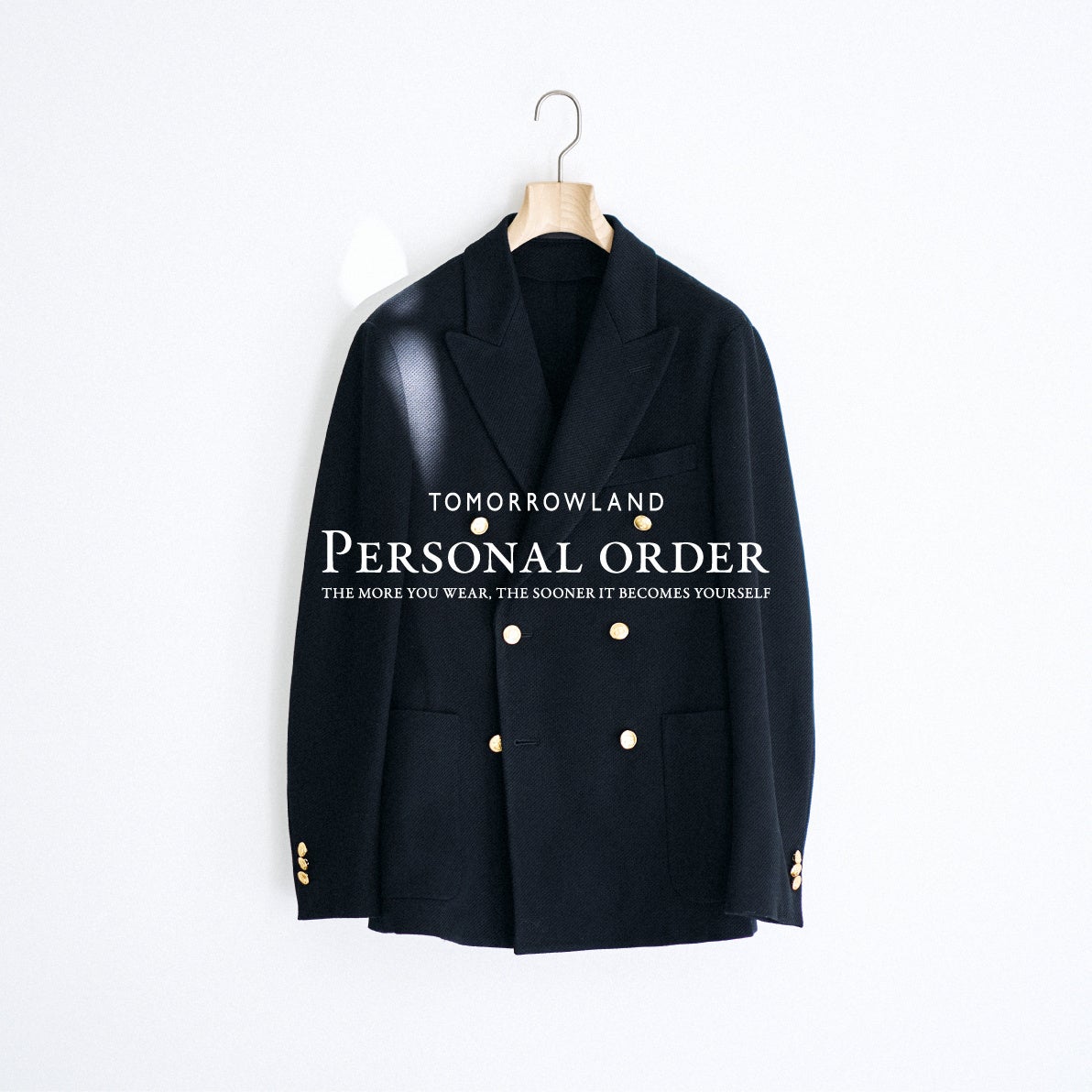 また品格と遊び心を併せ持ったドレスアップを提案する<TOMORROWLAND PILGRIM>。今回特別にブレザーとセットアップをオーダー頂ける<PERSONAL ORDER>イベントを同時開催いたします。