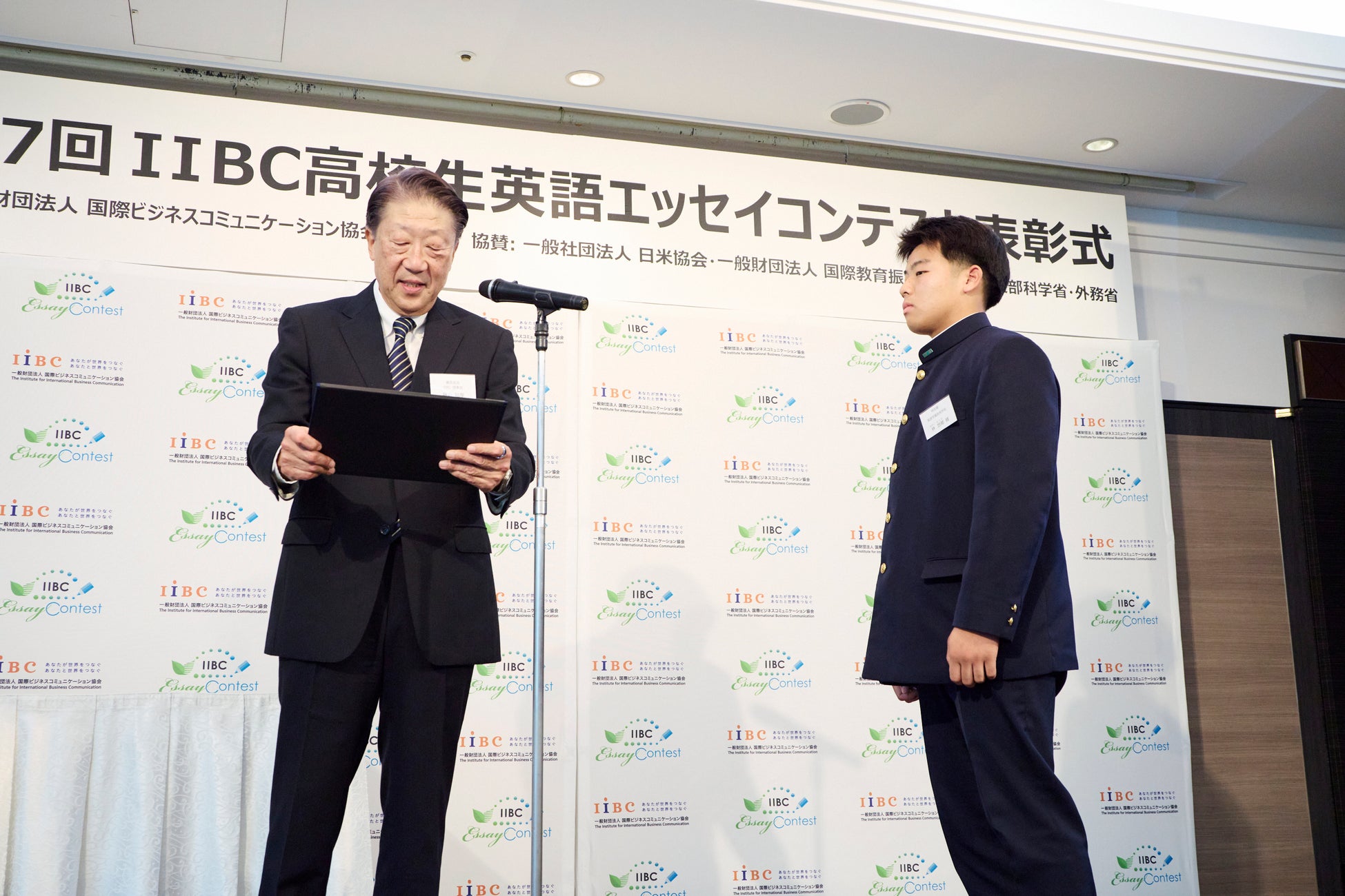 日本でTOEIC® Programを実施・運営する国際ビジネスコミュニケーション協会(IIBC)(所在地:東京都中野区中野、理事長:藤沢 裕厚)は、高校生を対象に毎年開催している英語エッセイコンテスト「第17回 IIBC高校生英語エッセイコンテスト」の表彰式を、11月23日(日)にホテルニューオータニ 東京で開催しました(後援:文部科学省、外務省/協賛:一般社団法人 日米協会、一般財団法人 国際教育振興会)。