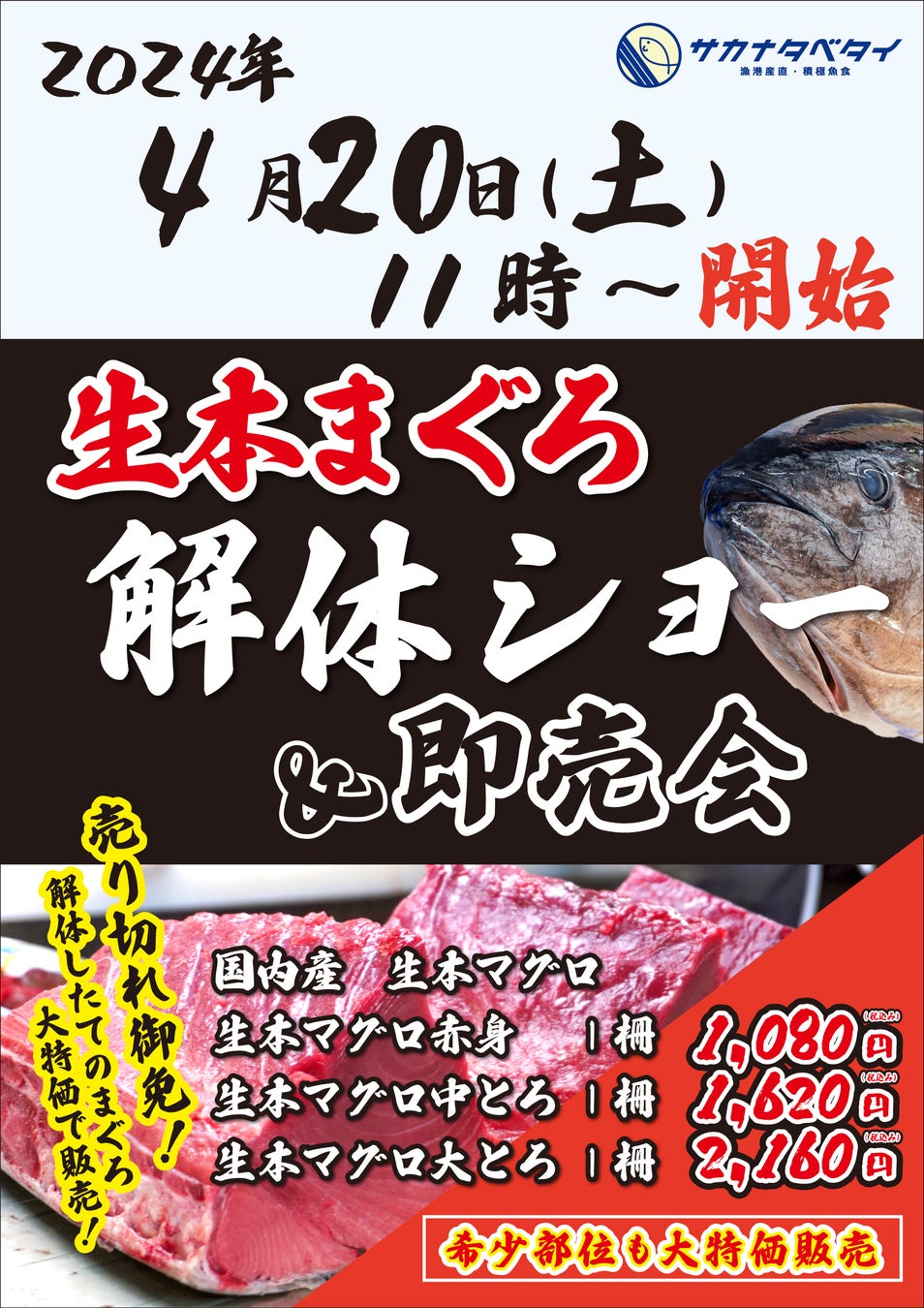 『サカナタベタイMEGAドン・キホーテ本八幡』の生本鮪解体ショーは、2024年4月20日(土)11時スタート!!