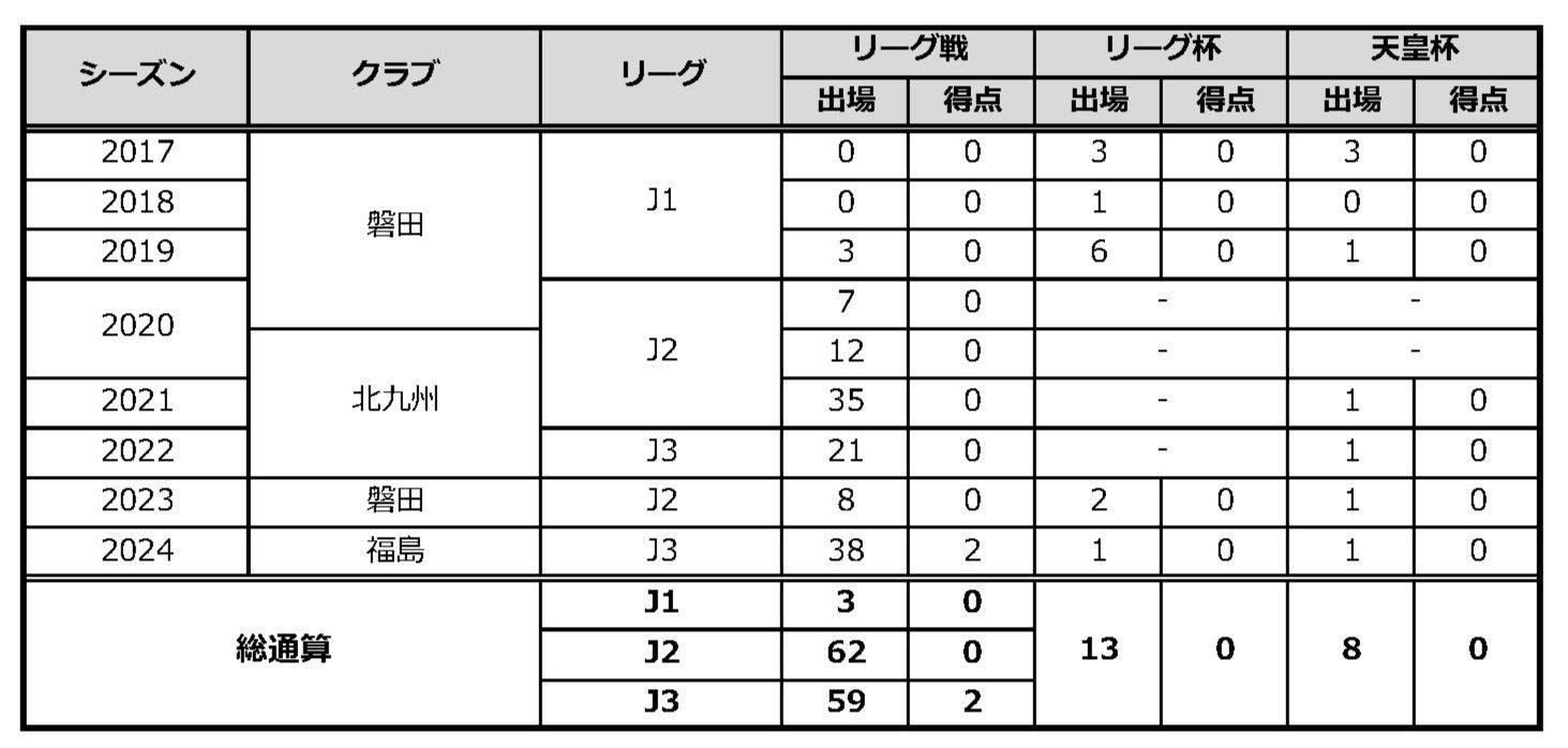 サッカー歴:FC古河Jrユース→昌平高→ジュビロ磐田→ギラヴァンツ北九州→ジュビロ磐田→福島ユナイテッドFC