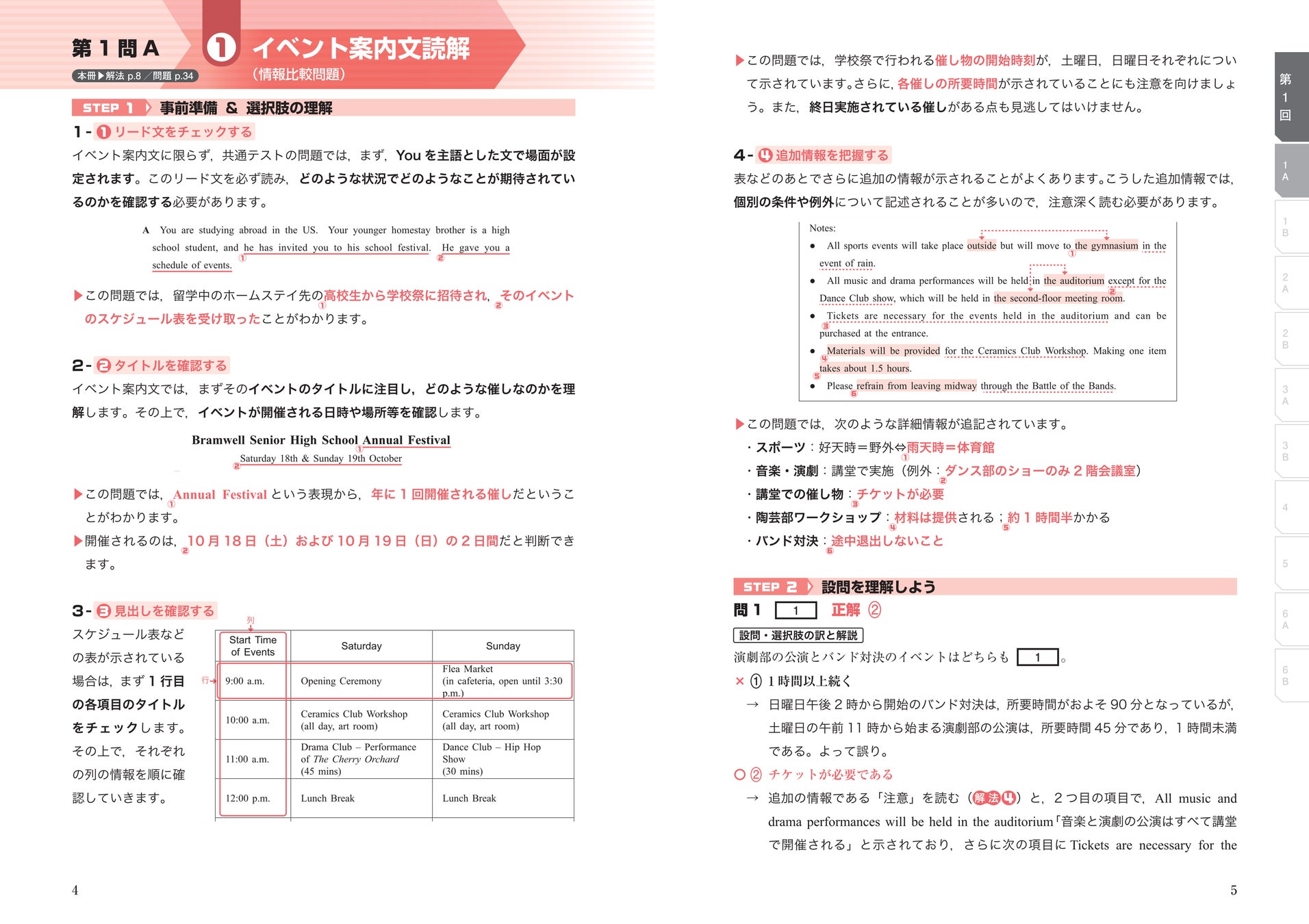 共通テストの試験問題を分類し、効率的な解き方を示したパターン別「解法」を掲載しています。模試の解説はこの「解法」に基づいたものになっているため、2回の模試を通して「解法」を習得すれば、制限時間内に多くの問題をこなさなければならないことが課題とも言われる共通テストの効率的な解き方を身につけることができます。