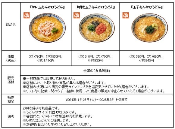 定番人気 寒い時期にほっこり「玉子あんかけシリーズ」も! 2024年11月26日(火)から全国の丸亀製麺にて販売開始