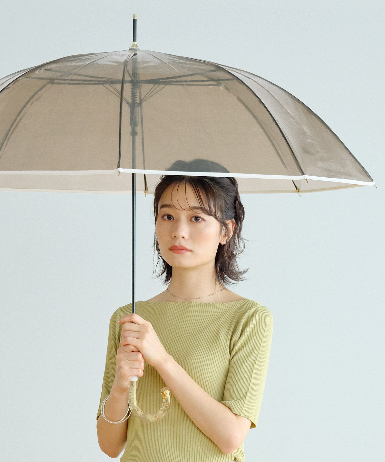 傘のハンドルが主役になった「アクセサリーアンブレラ」で、雨の日も気分華やぐ1日を。