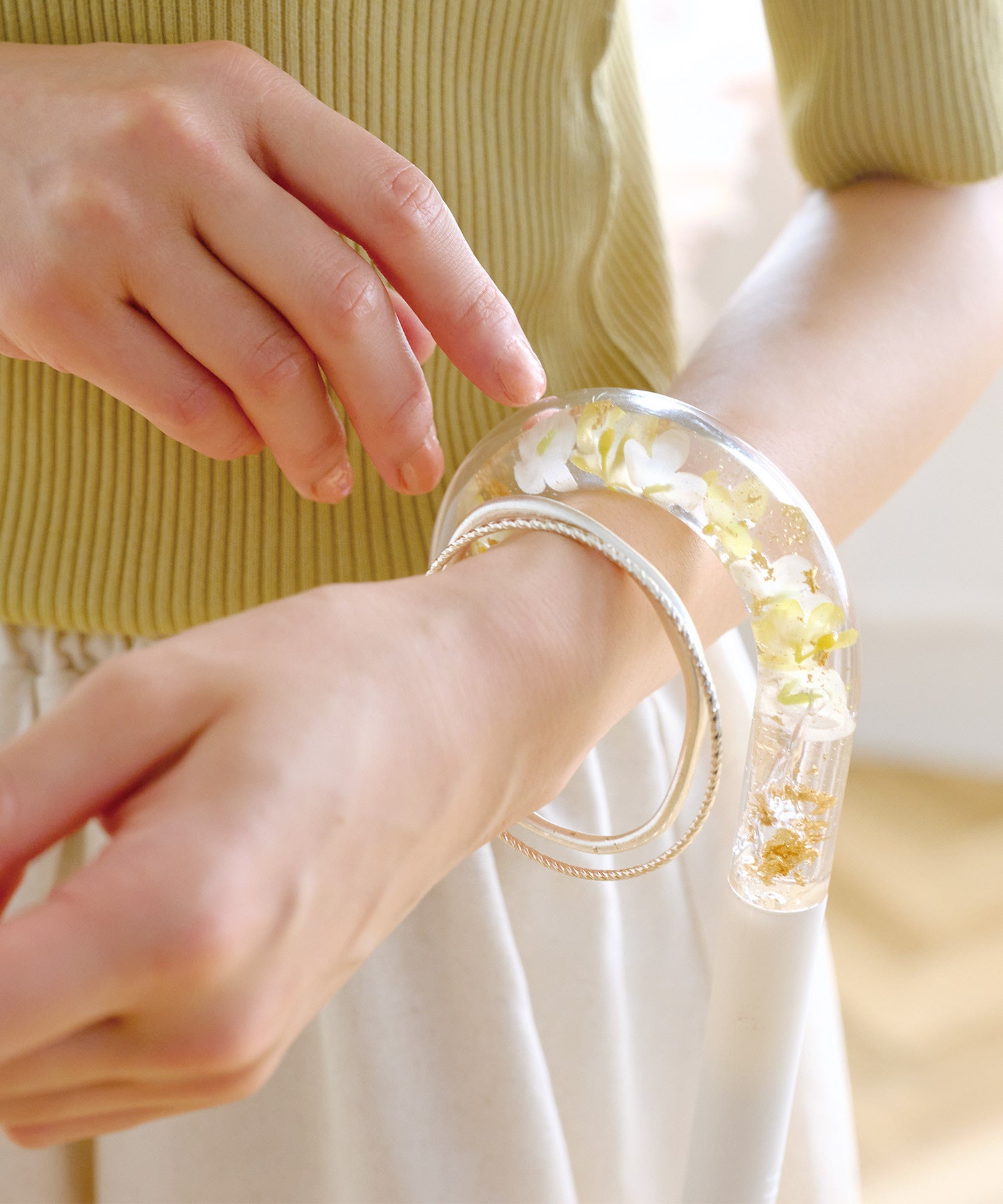 傘のハンドルが”バングル”に変身?!鮮やかな花びらなどを閉じ込めた、ハンドルが主役のWpc.新作ビニール傘「アクセサリーアンブレラ」発売 ―Wpc.公式オンラインショップ&直営店舗で販売開始―