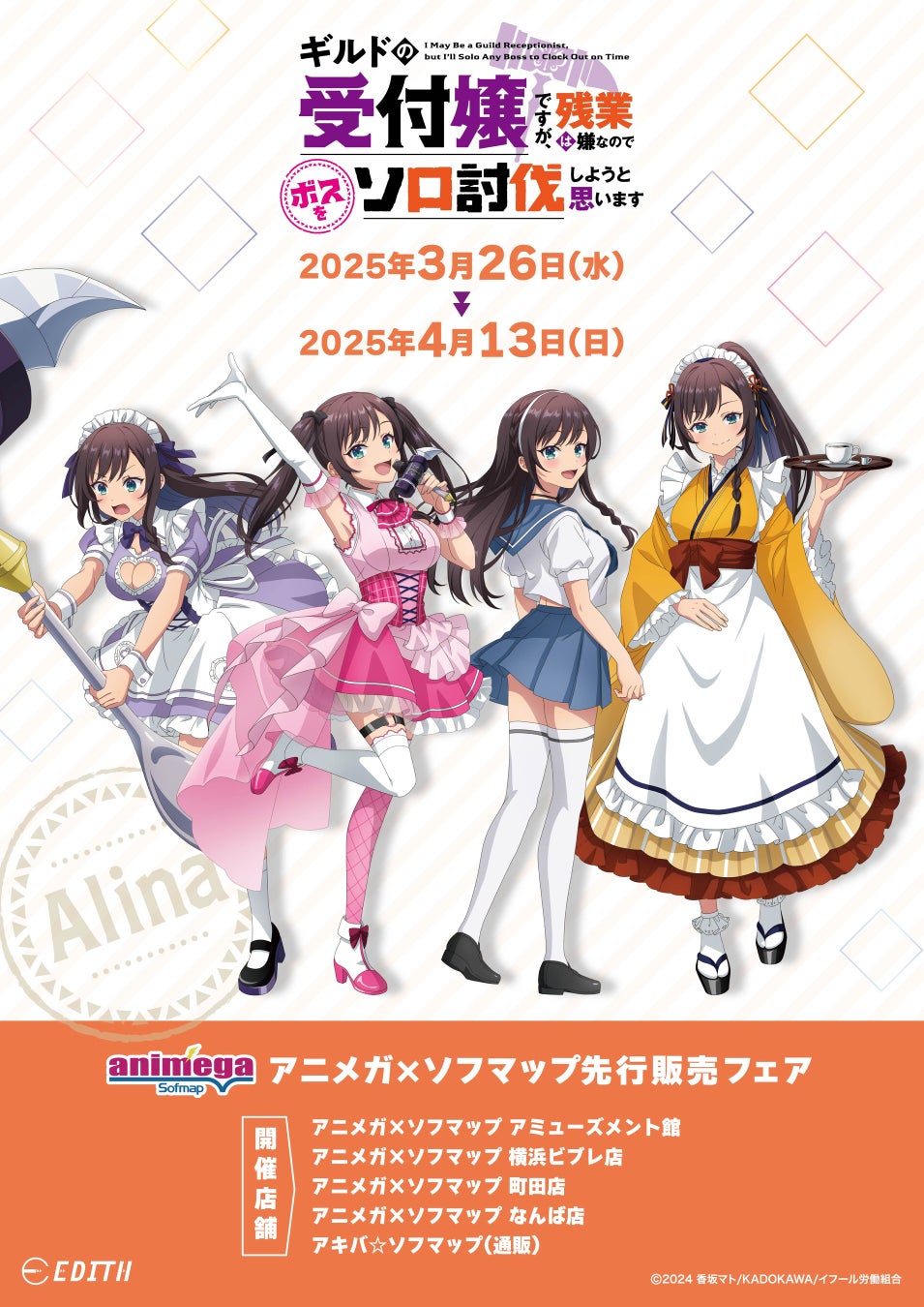 IPを活用したイベント事業・グッズ事業を手掛ける株式会社イーディス(本社:東京都豊島区、代表取締役:森俊平、以下イーディス)は、アニメ『ギルドの受付嬢ですが、残業は嫌なのでボスをソロ討伐しようと思います』の描き下ろしイラスト、描き起こしミニキャライラストを使用した商品を2025年3月26日よりアニメガ×ソフマップにて先行販売いたします。