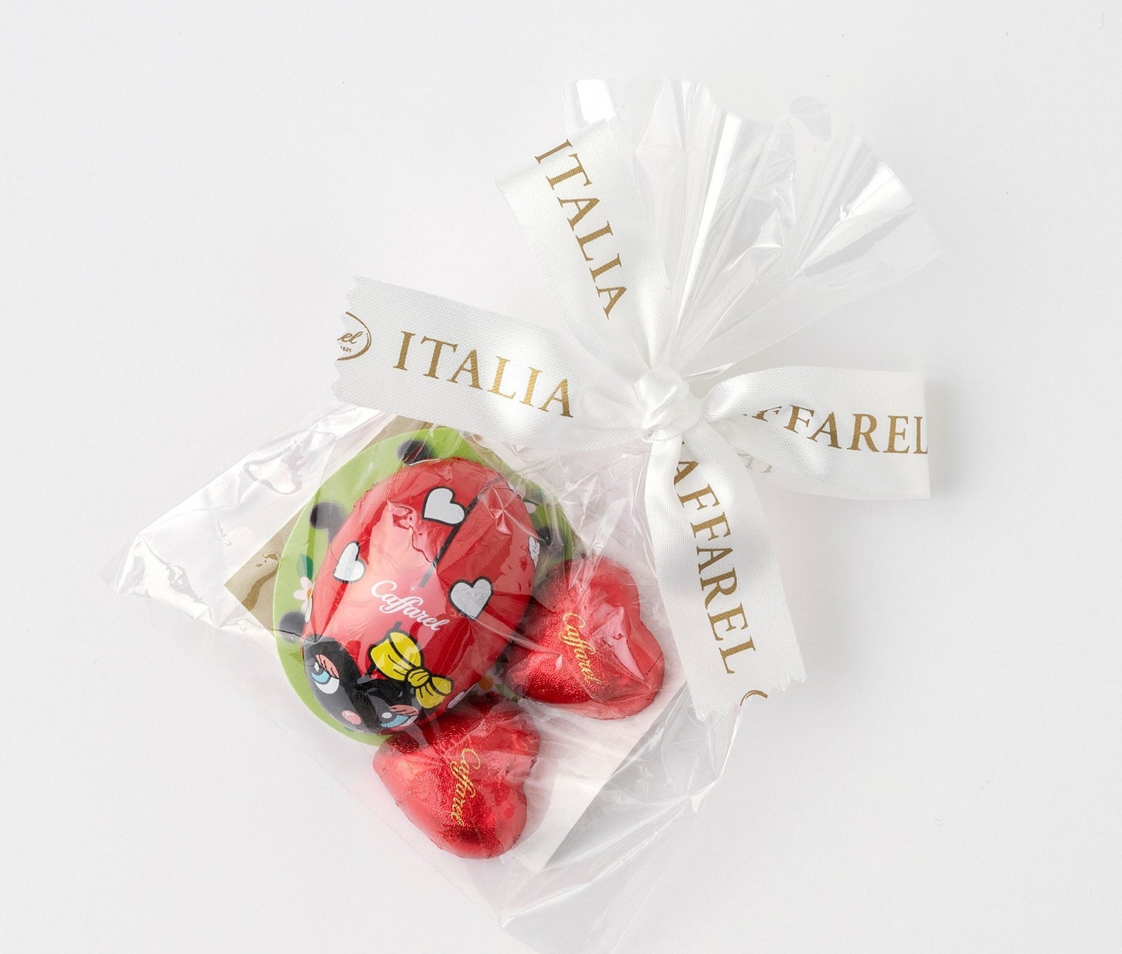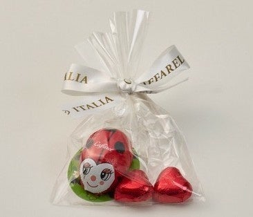 イタリアではてんとう虫は幸運を運ぶ象徴とされています。可愛いてんとう虫とミニハートを組み合わせた計3粒のアソートです。
