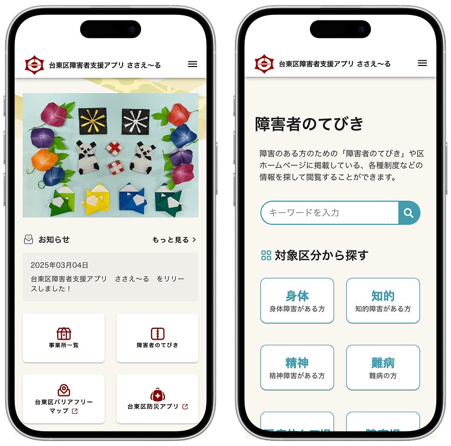 アプリ名:台東区障害者支援アプリ ささえ~る