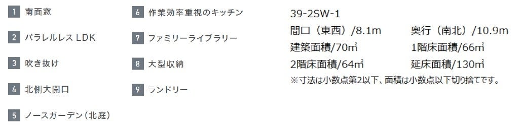 【参考資料】コンセプトモデル「39-2SW-1」39坪 南入りタイプ