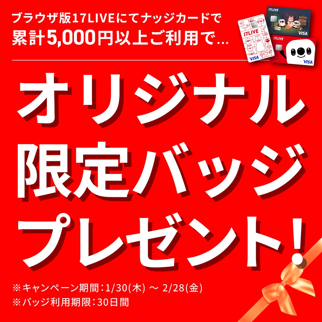 ナッジアプリにて「17LIVE」クラブを選択のうえ新規登録し、17LIVEオリジナルデザインカードをお申し込みいただいた方。