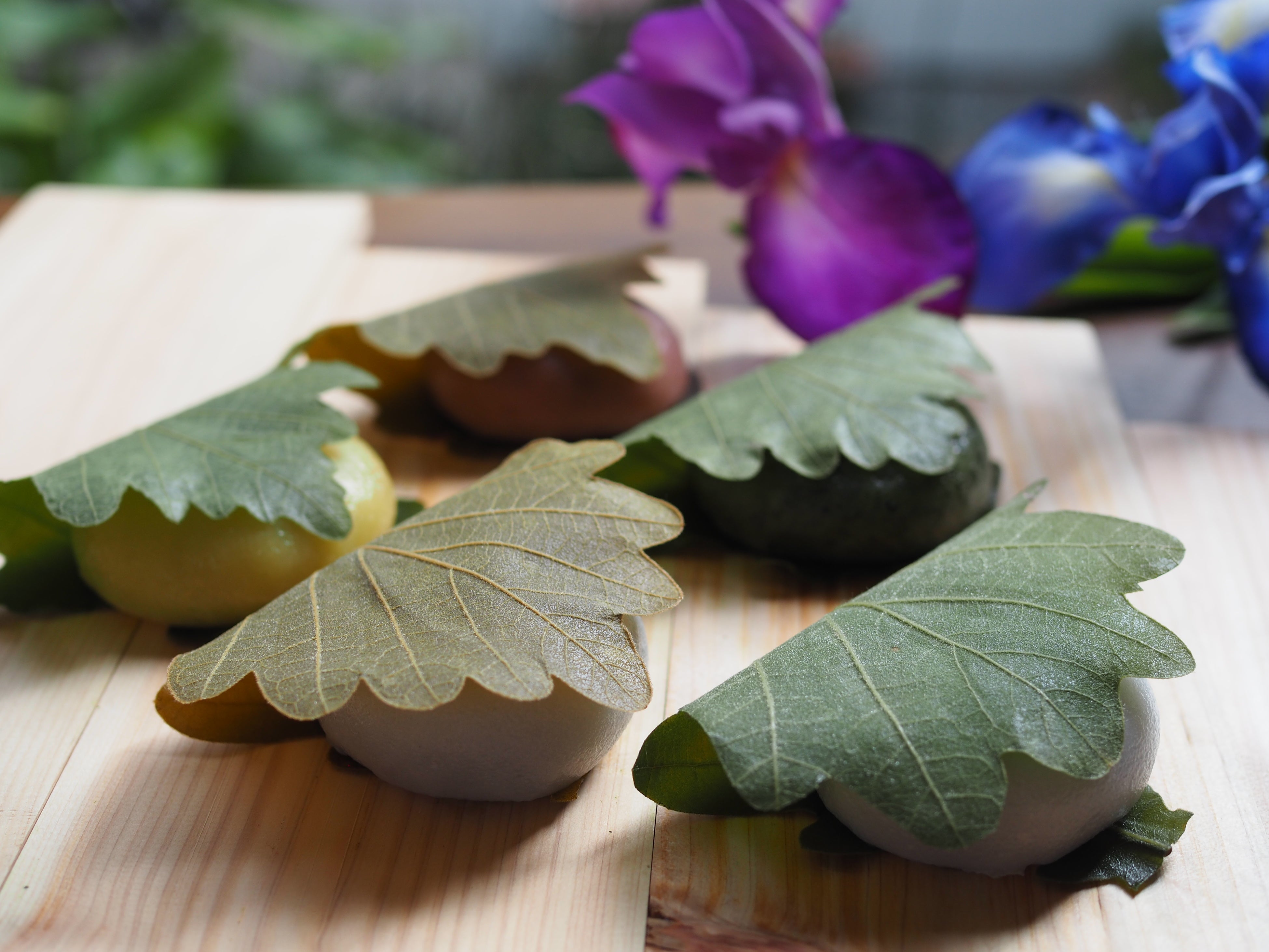 同店では、初夏の香りをまとった柏葉を毎朝一枚一枚手巻きし、出来立てを提供。