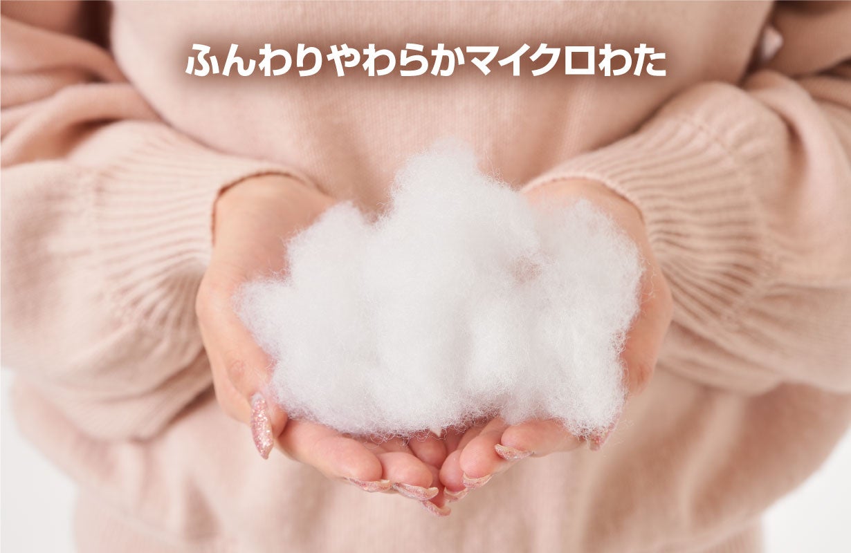 中材には柔らかくきめ細かな素材のマイクロわたをたっぷり使用!まるでふわふわの雲に包まれたかのような気持ちのよい着け心地となっています。