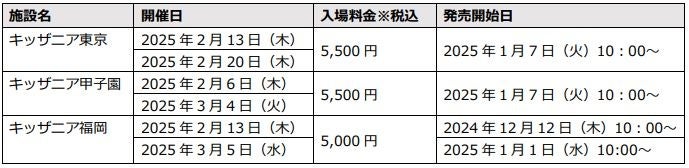 ※キッザニア東京・甲子園は、2025年1月7日(火)10:00より公式サイトにて発売開始予定です。