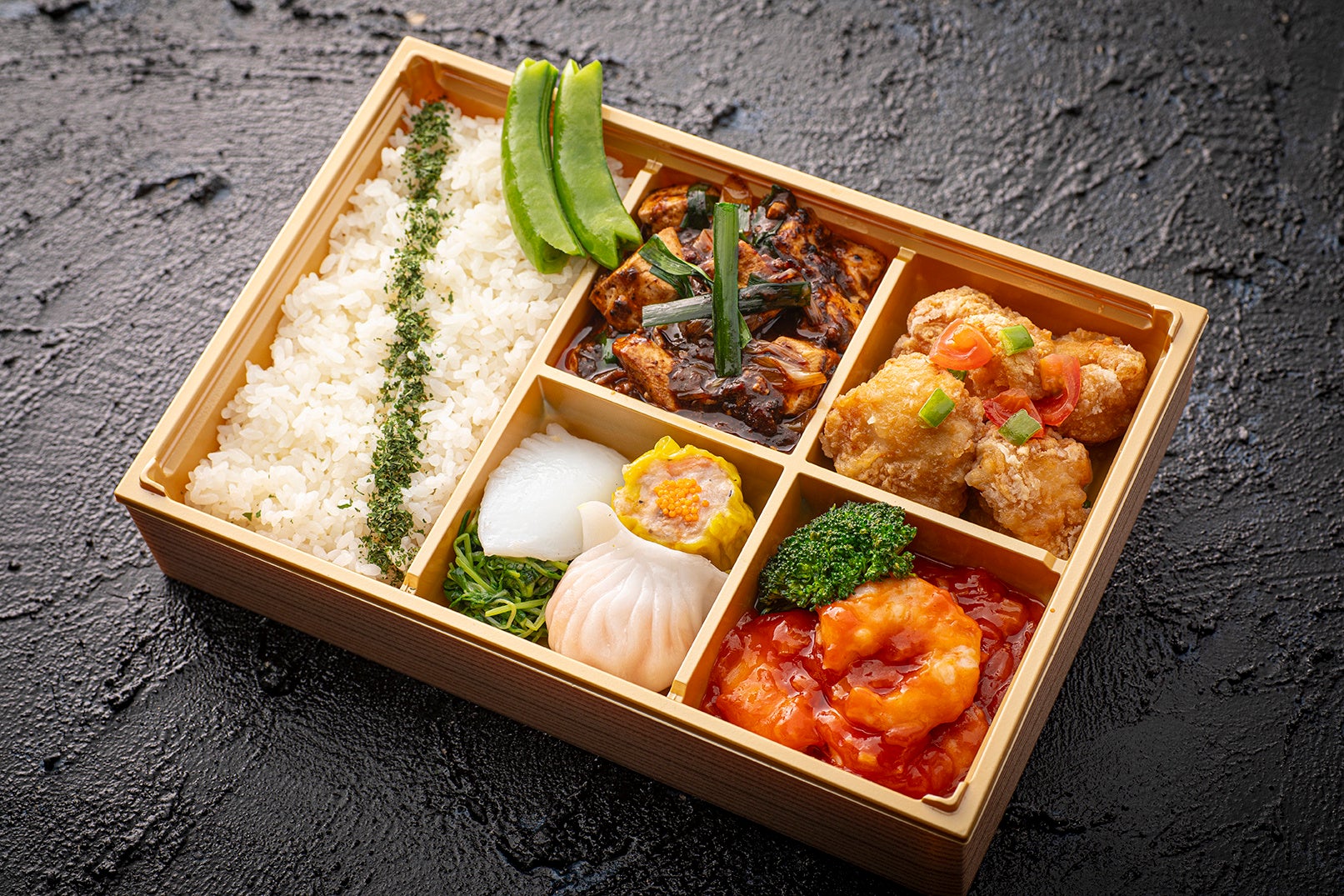 麻婆豆腐・海老のチリソース・点心3種盛り・唐揚げ。中華の人気メニューを贅沢に取り合わせ。