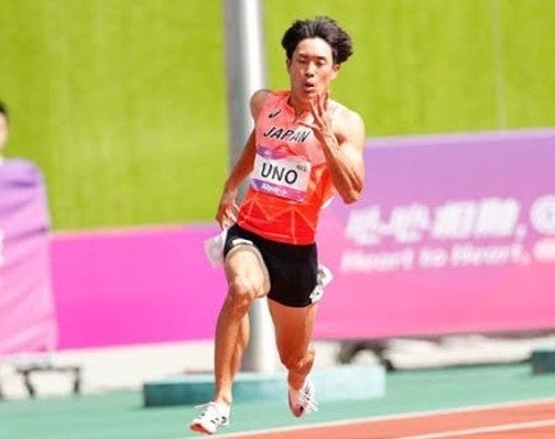 宇野 勝翔選手は、男子100mにおいて、2022年の日本インカレチャンピオンであり、2023年杭州で行われたアジア大会に選出され、4×100mリレーでは、日本の銀メダルに貢献しました。