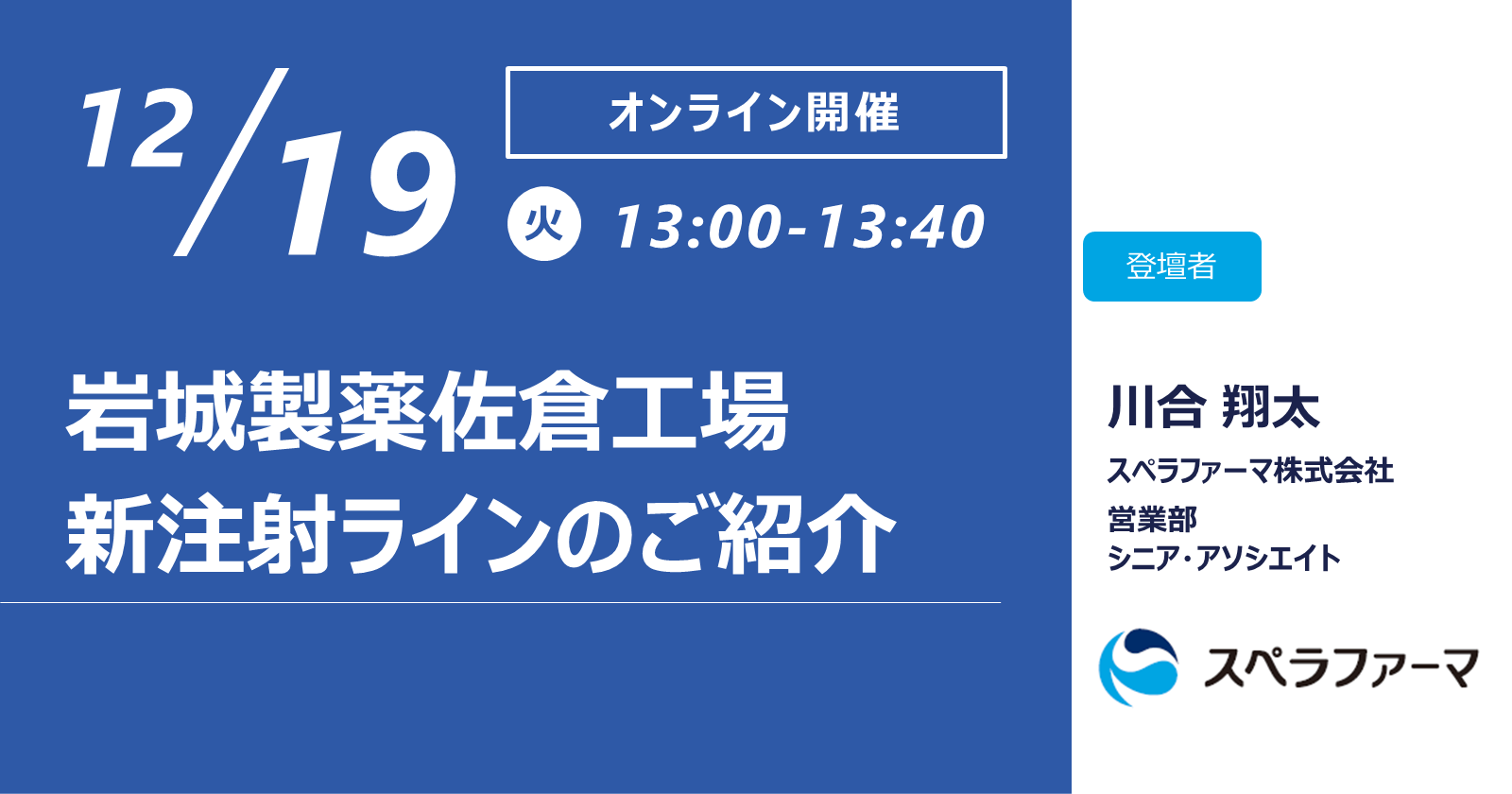 【12/19(火)開催】スペラファーマ株式会社、「岩城製薬佐倉工場 新注射ラインのご紹介」ウェビナー開催