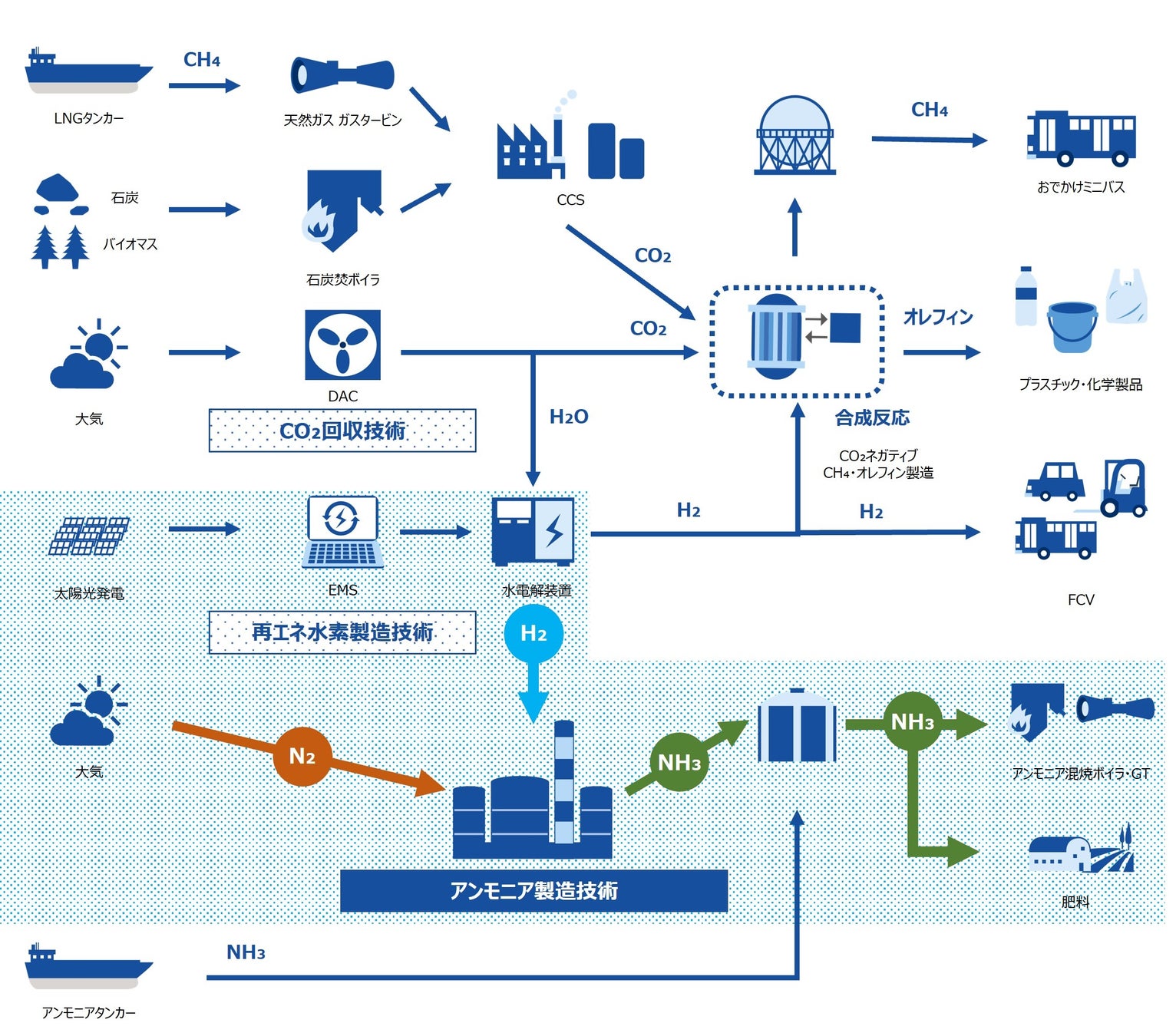 グリーン水素を用いてアンモニアを製造するPower-to-X技術の開発を目指す