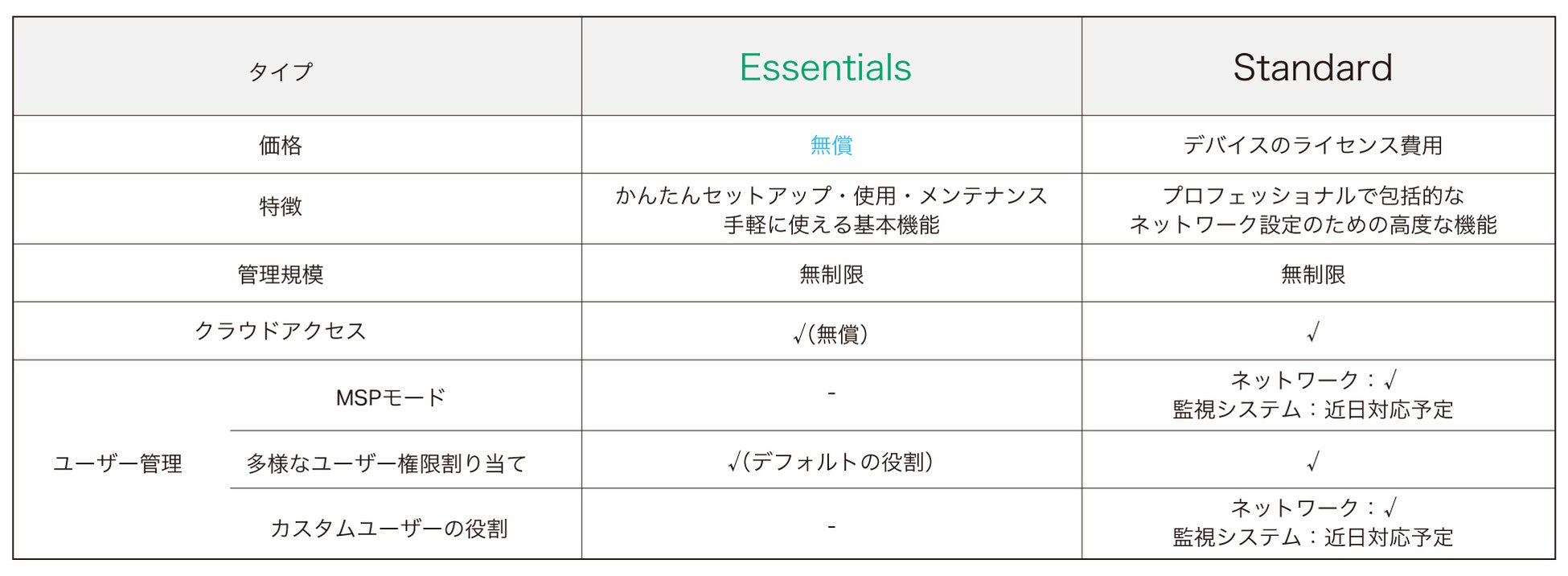 ■Omada Central Essentials(無償版)VS Standard(有償版)*3