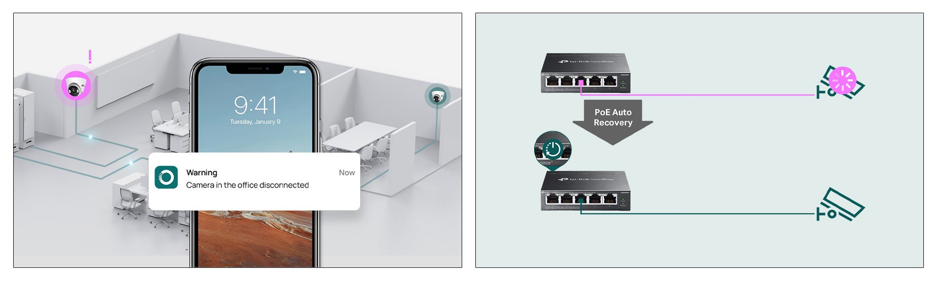 カメラがオフラインになると通知が届くため、 PoEオートリカバリーの強化版、IntelliRecover