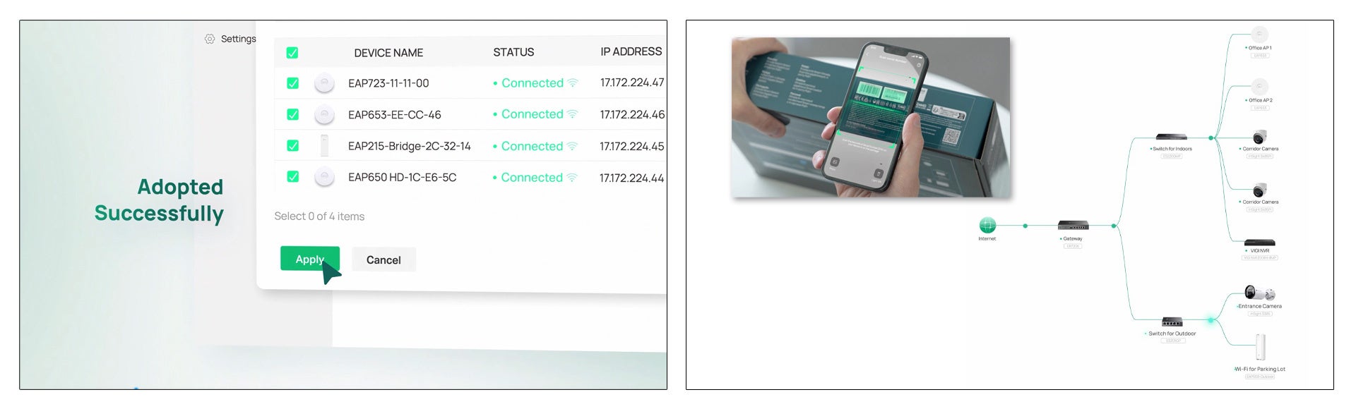 Omada Central Essentialsは、OmadaアクセスポイントやAgileシリーズのイージーマネージスイッチと組み合わせることで、非常に手軽なセットアップ・強化されたセキュリティ&クオリティ・OmadaアプリやWebブラウザからのリモートメンテナンス&トラブルシューティングを備えた、監視ネットワーク向けの最適なソリューションを実現します。アンマネージスイッチからクラウドマネージスイッチへ、追加費用なしでシームレスにアップグレードでき、トラブルシューティングやモニタリングの効率化が可能です。