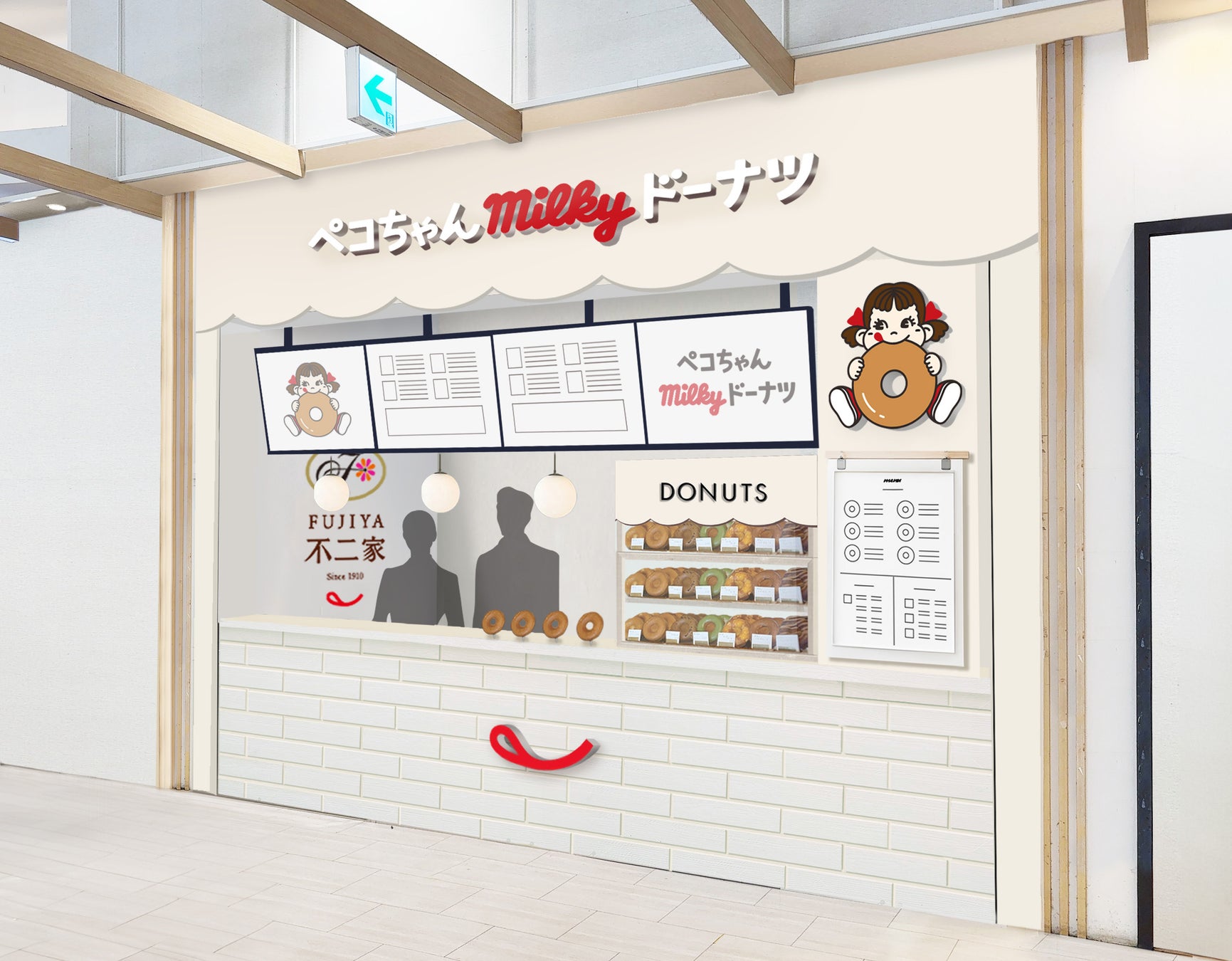 不二家の新業態「ペコちゃんmilkyドーナツ」ビナウォーク海老名店 オープン!「ミルキー」風味のふんわり食感ドーナツなどを取り揃えました。