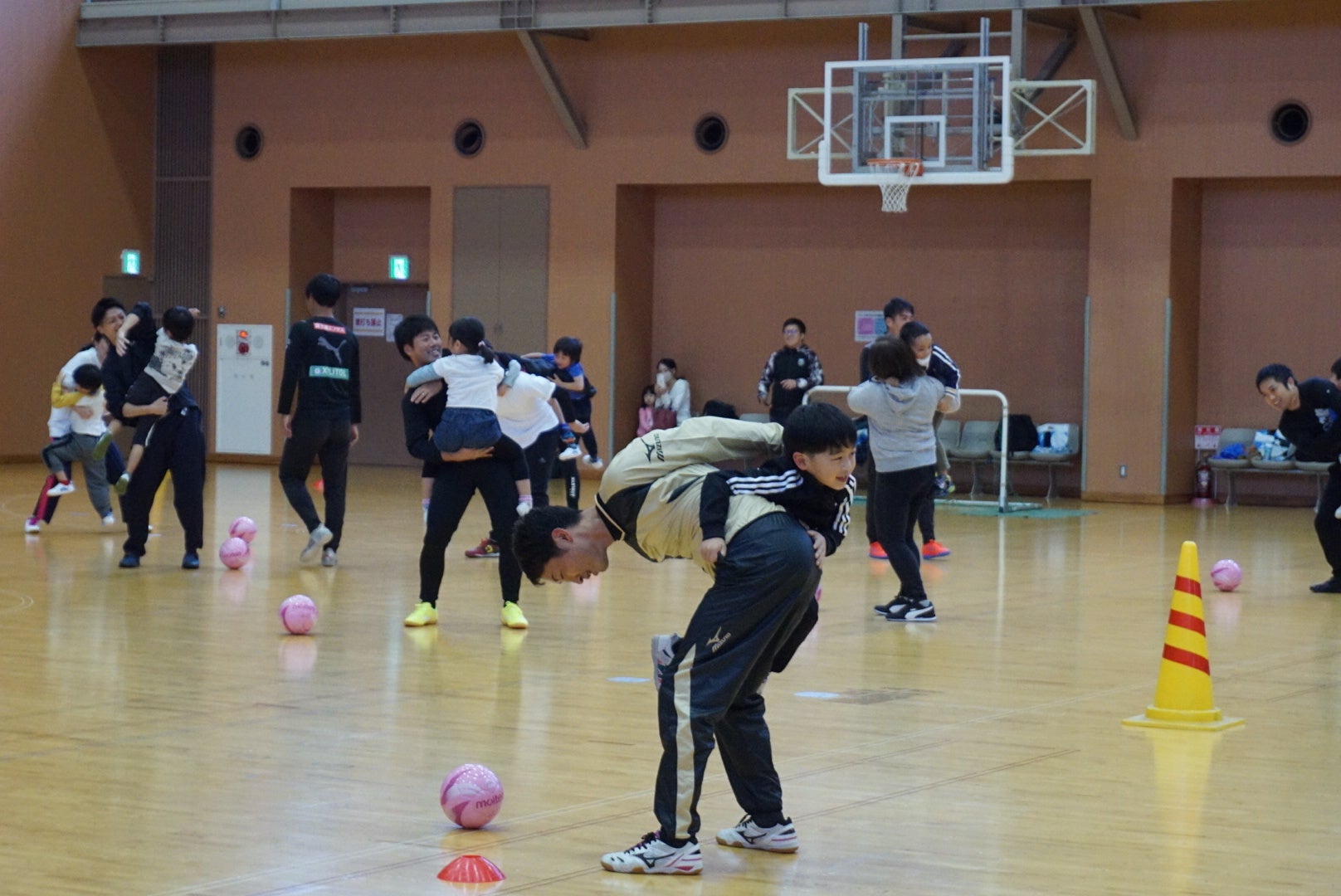 当社は、東日本被災地支援として大船渡市で2012年に始めた学習支援活動「寺子屋いきいき世代」を発展させ、2016年からはスポーツを通じた応援として「サッカー教室 in 大船渡」を実施しています。市内の小中学生を対象としたサッカー教室には38名が参加、未就学児童と保護者を対象とした親子レクリエーションには20組40名が参加しました。いずれも川崎フロンターレのスクール・普及コーチによってサッカー指導が行われました。