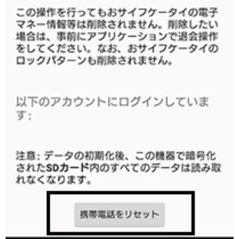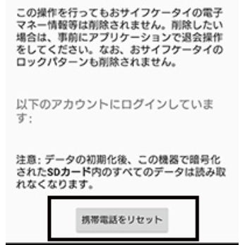 Step4:注意事項が表示されるので確認し、「携帯電話をリセット」をタップします。