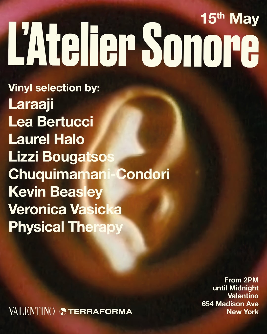ルッジェーロ・ ピエトロマルキ(Ruggero Pietromarchi)が設立したイタリアのカルチャー企業、テラフォーマ(Terraforma)とのパートナーシップにより生まれたこのサウンドスペースは、2025年5月15日(木)、ニューヨークのヴァレンティノ マディソンアベニューストアに登場しました。