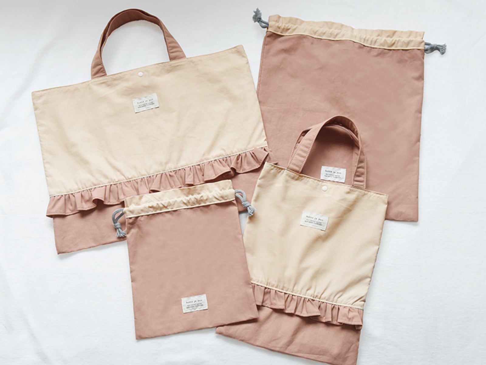 単品販売はもちろん、レッスンバッグ・シューズバッグ・巾着大・巾着小などが揃うセット販売も。