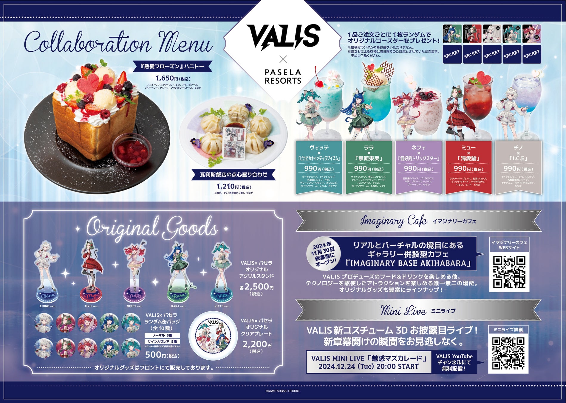 本コラボの開始日と同日の11月30日(土)には、VALISが「イマジナリー店長」としてスペシャルアイコンを務める新拠点「IMAGINARY CAFE AKIHABARA by VALIS(https://x.com/imaginary_base)」もオープン予定です。