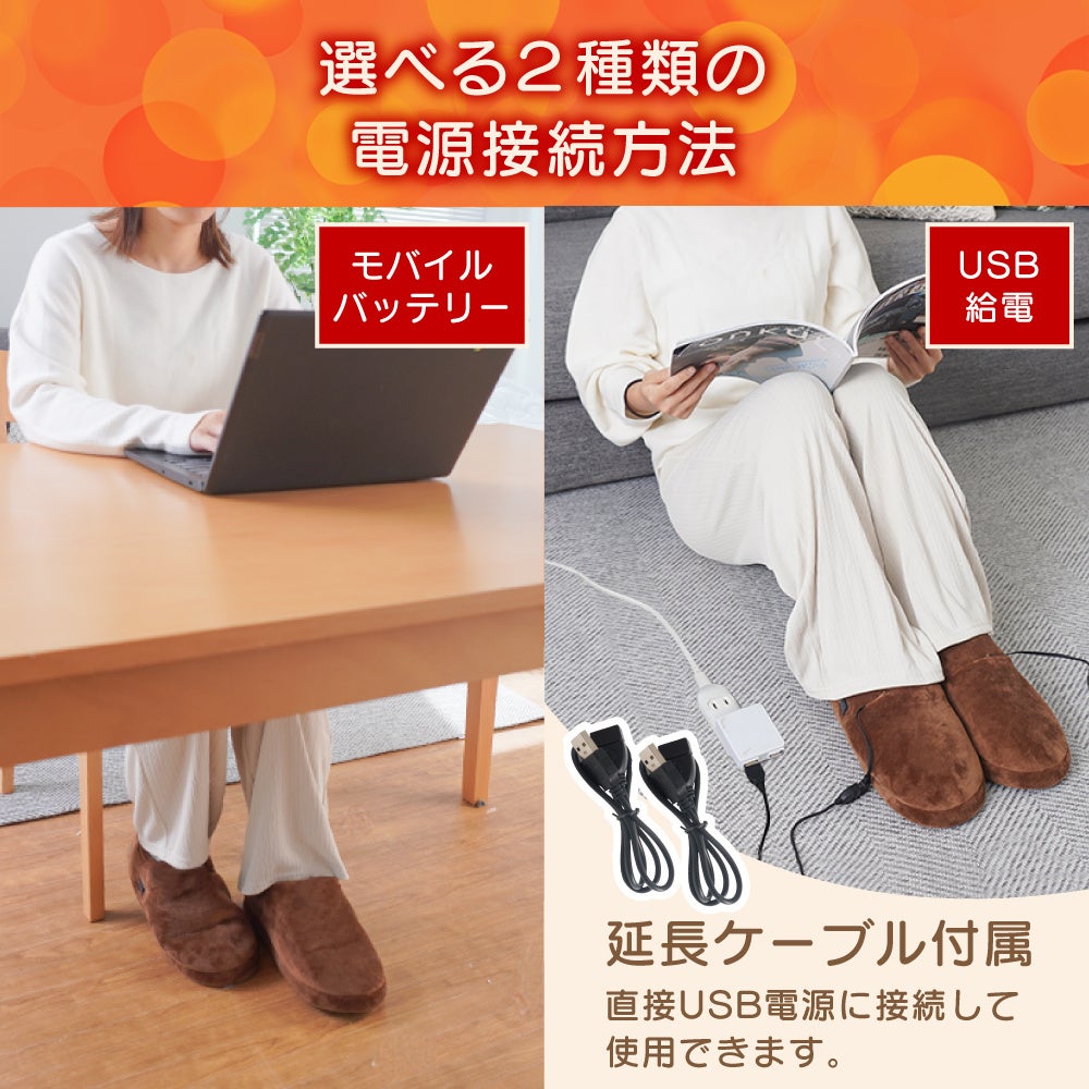 ■ヒーターを搭載したモバイルバッテリーで使えるUSBあったかスリッパ