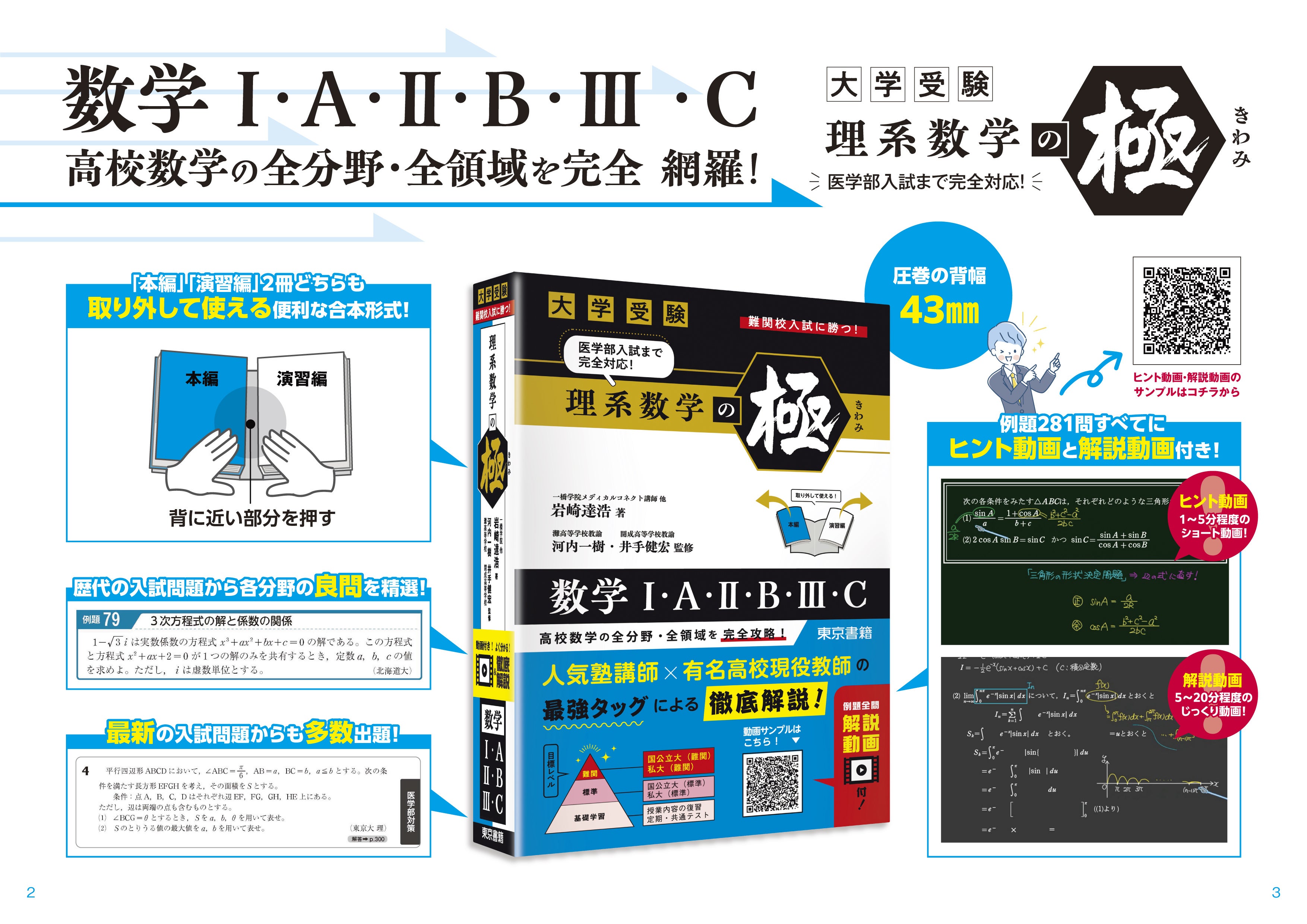 例題281問+演習問題281問+医学部対策問題51問、計613問を掲載。合格力を盤石にする、唯一無二のハイレベル問題集です。