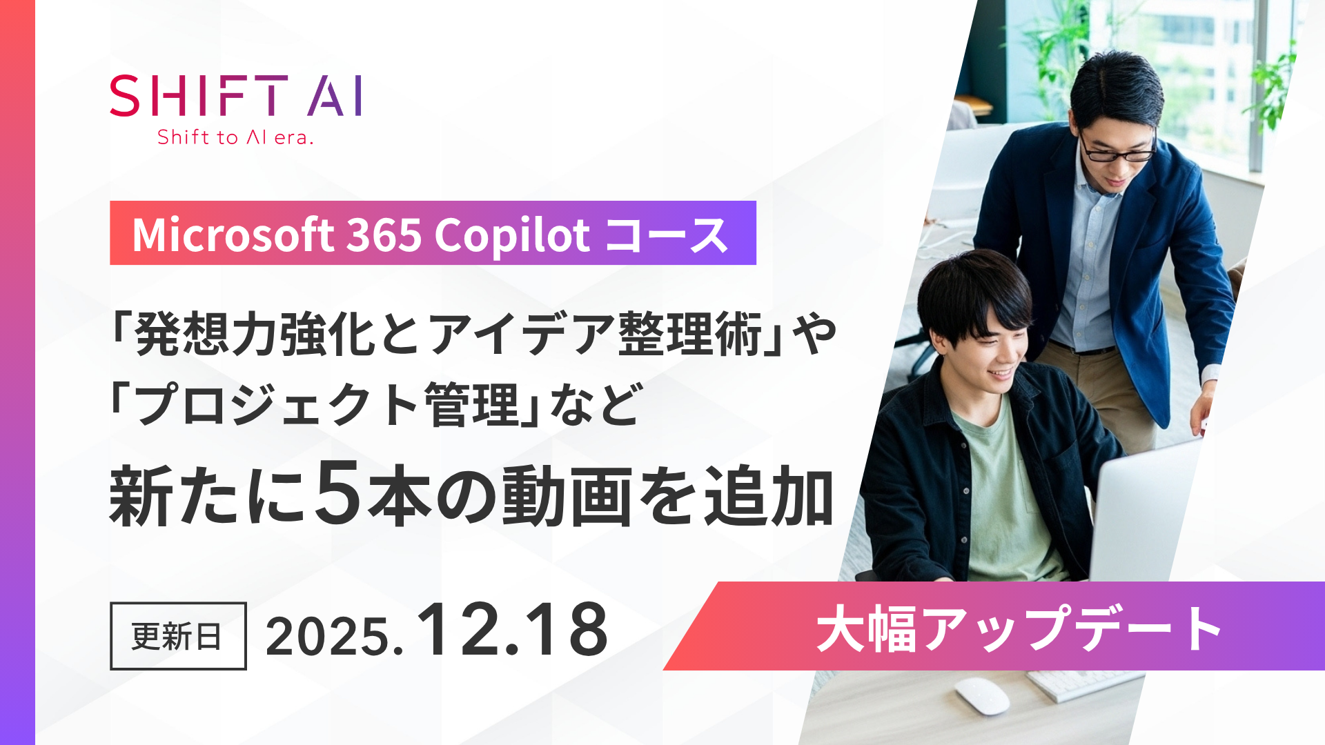 SHIFT AI for Biz 【Microsoft 365 Copilotコース】に5つの新コンテンツを追加し、12月18日よりアップデート