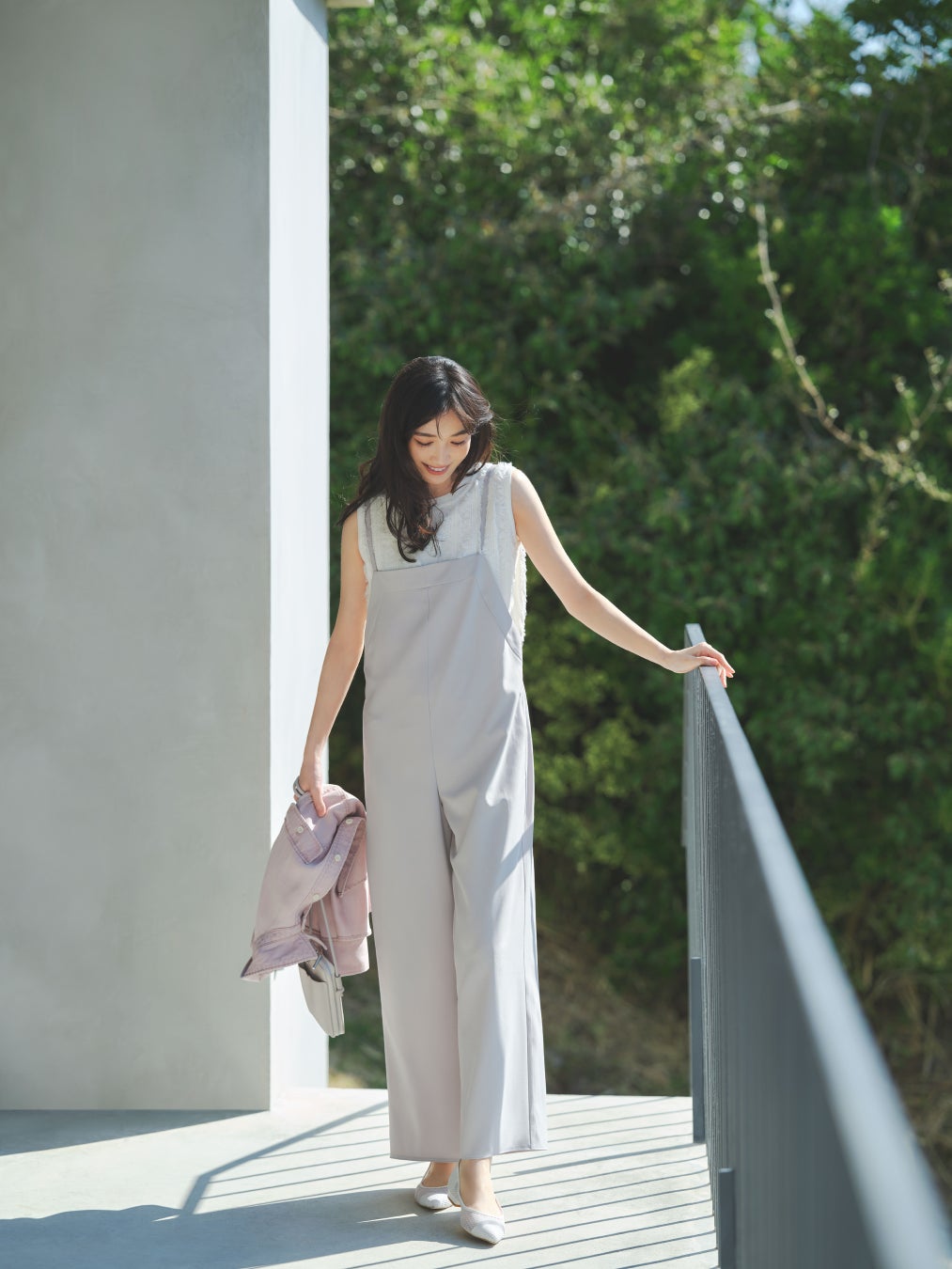 3. 上品な落ち感素材&体のラインを拾わないシルエットのきれいめサロペット