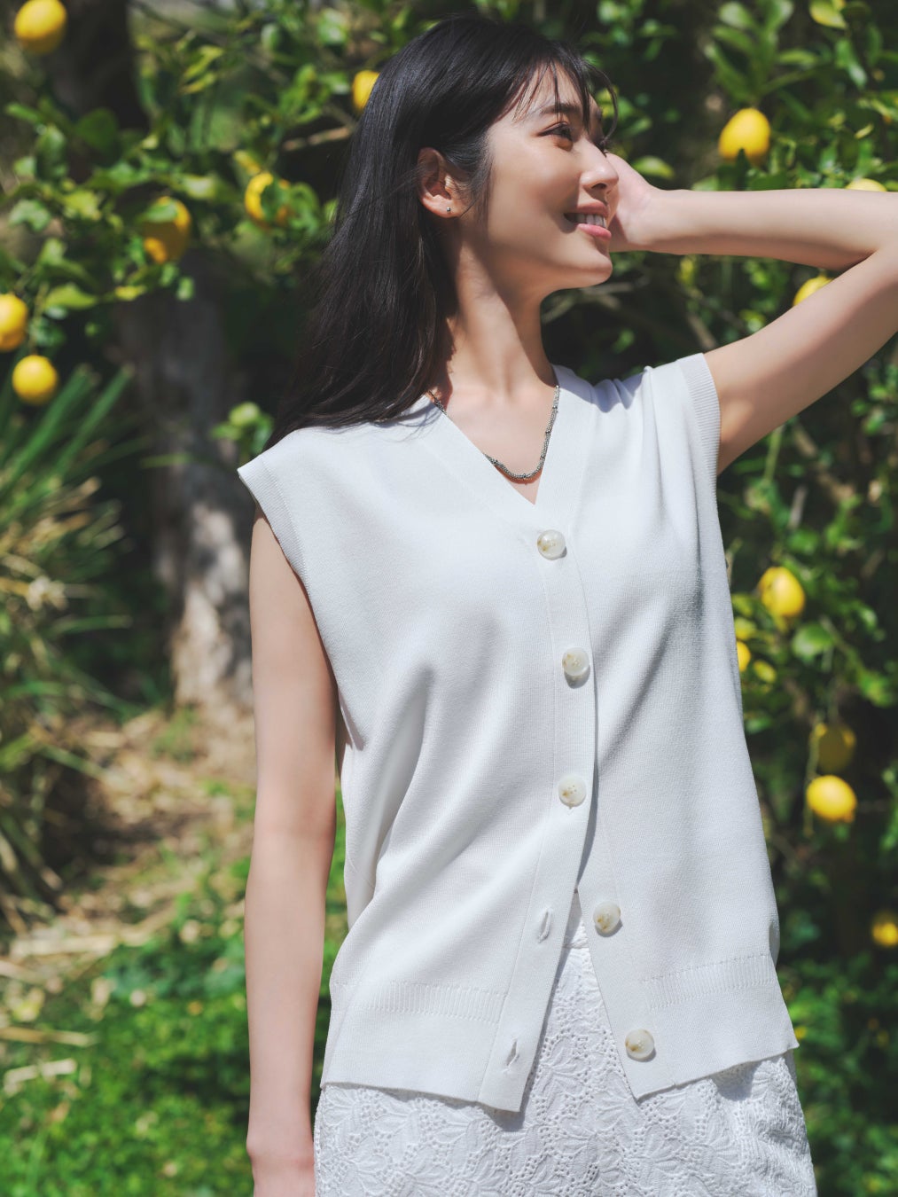 4. トレンドのコンパクトなベストと透け感のあるメッシュスカートのセット