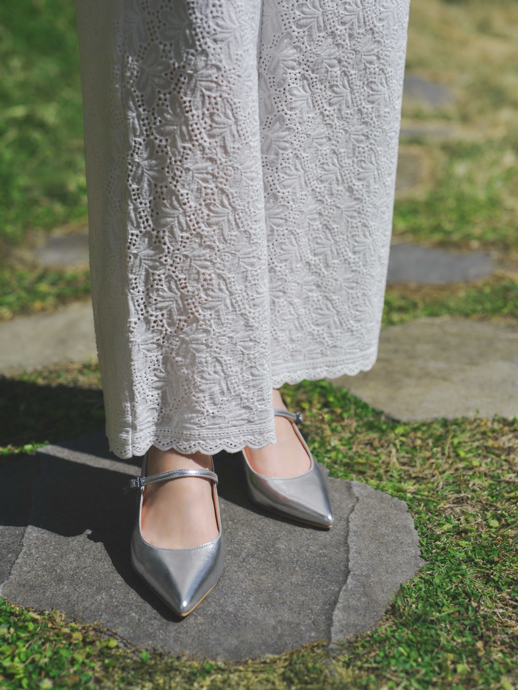 5. フラワーモチーフのカットワーク刺繍を贅沢に取り入れたレースパンツ