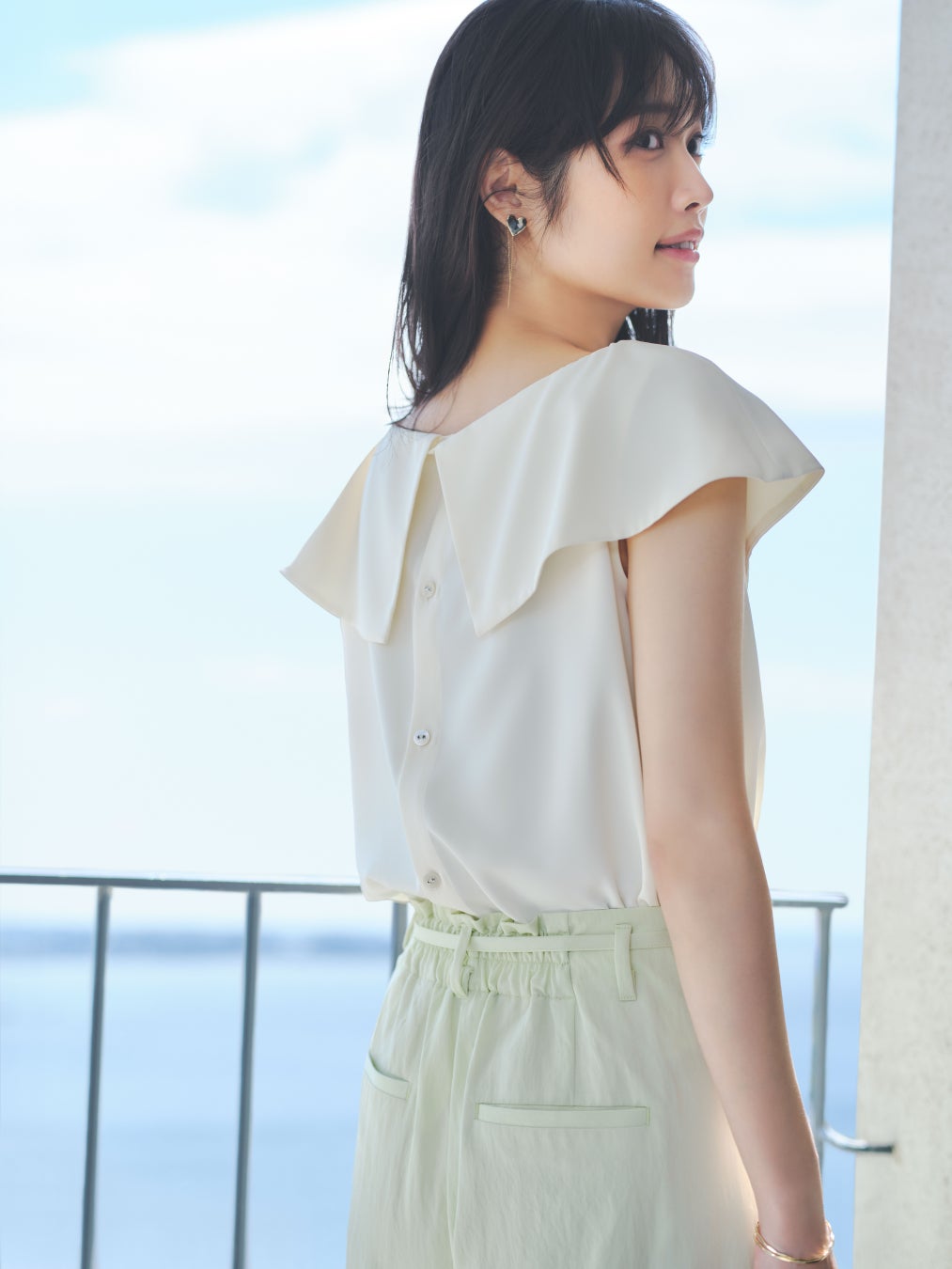 首もとに自然な立体感や華やかさをプラスするロールカラーブラウス