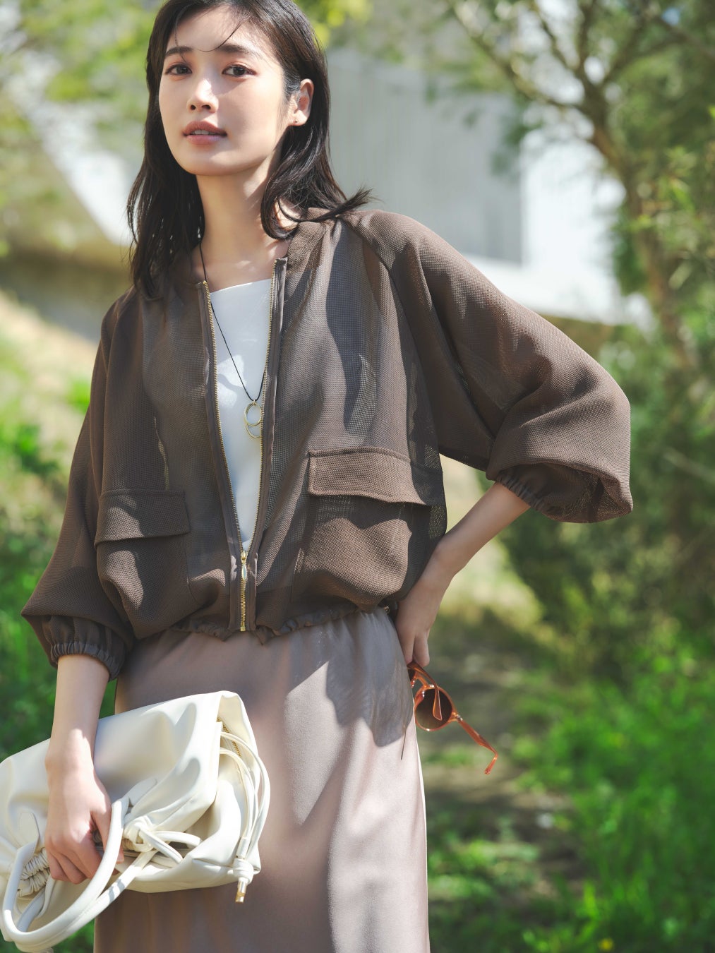 6. ゆとりのあるシルエットがエフォートレスな装いを実現するシアーブルゾン