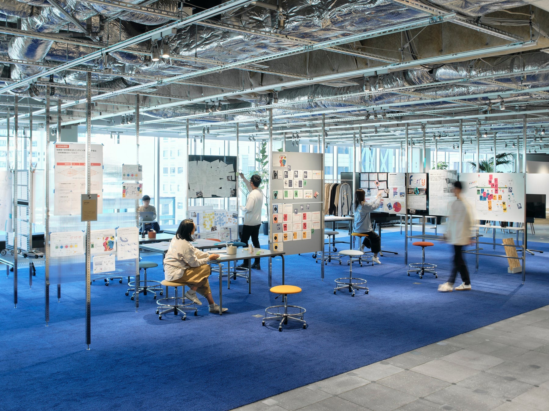 ・プロジェクトルーム「field」では、スクラム(※3)チームが議論やアジャイルな検証を実施。セミオープンな設計とすることでプロジェクトの垣根を越えたひらめきを生み出し、開発活動やアジャイルな事業創出プログラムを推進、事業のアイデアを育成