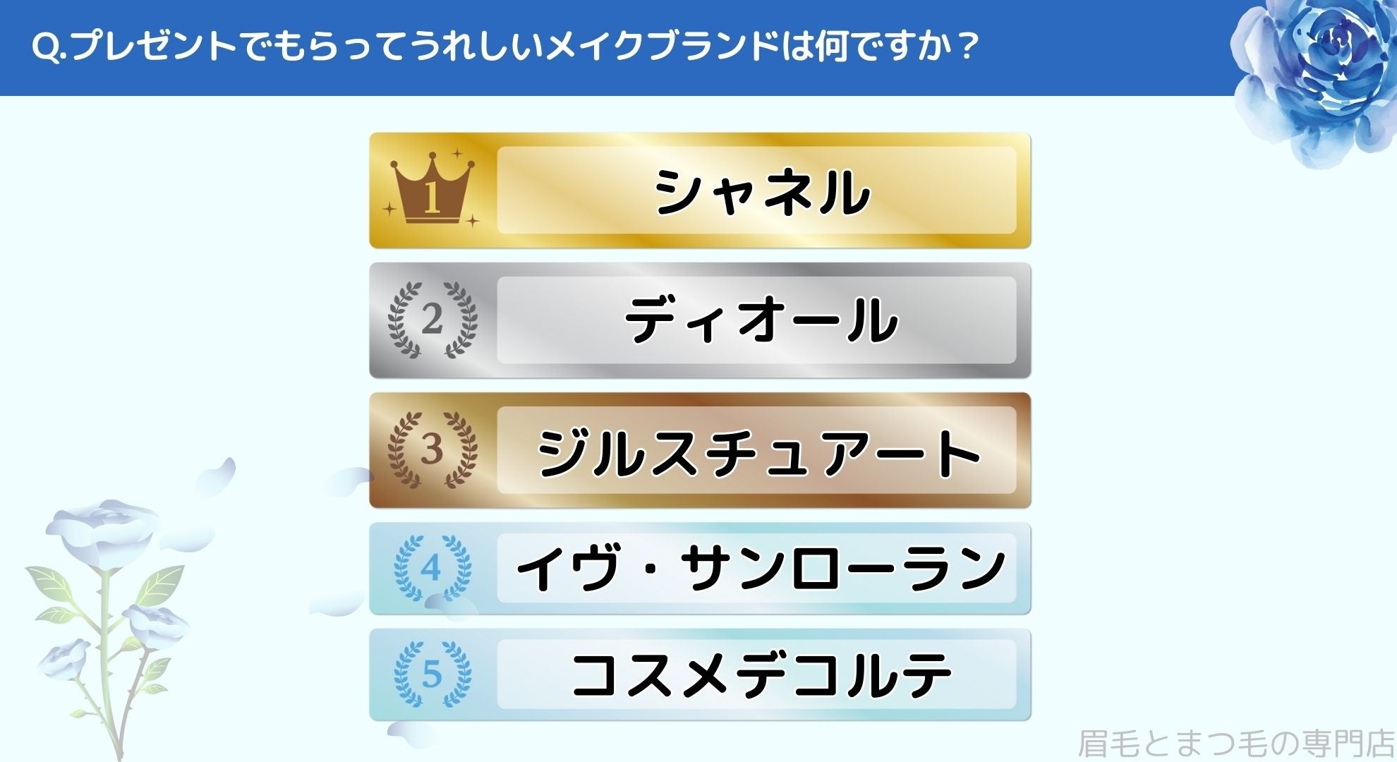 プレゼントでもらいたいメイクブランドを調査|まつ毛・眉毛サイト運営がアンケート