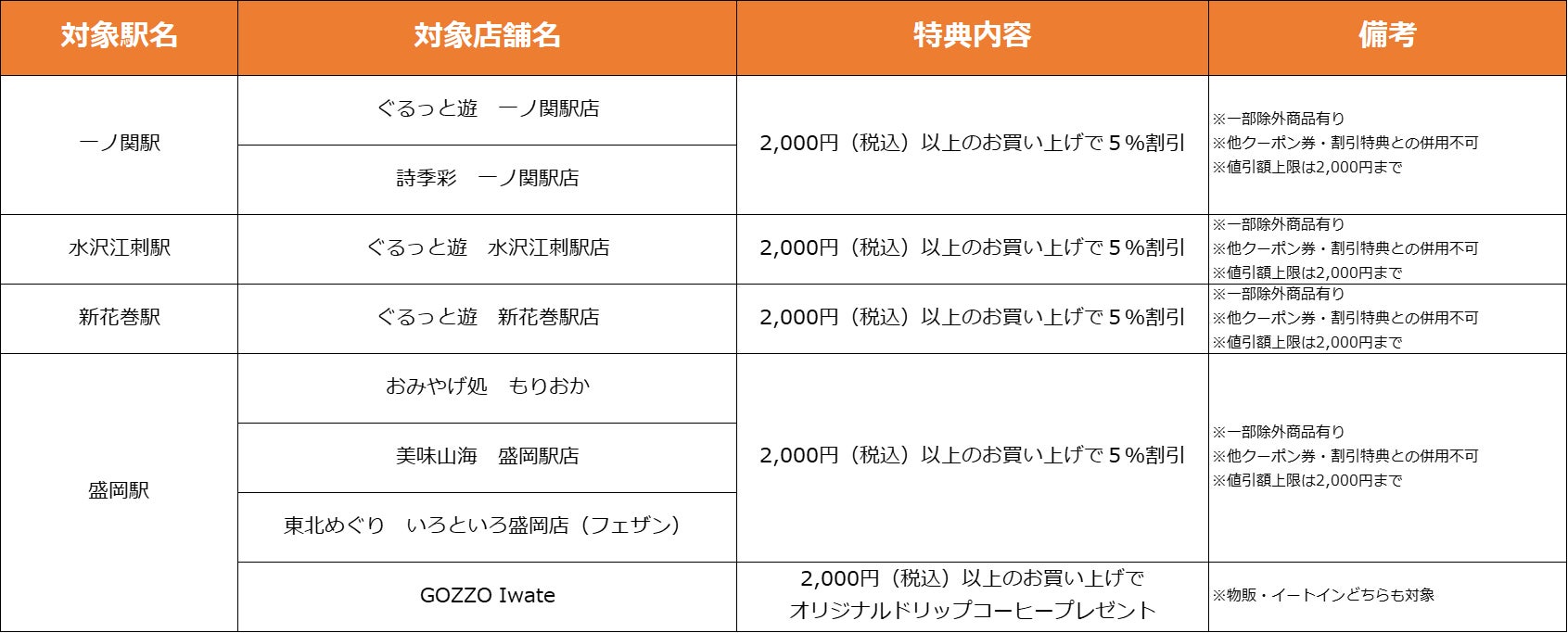 【岩手県】特典対象店舗・特典内容