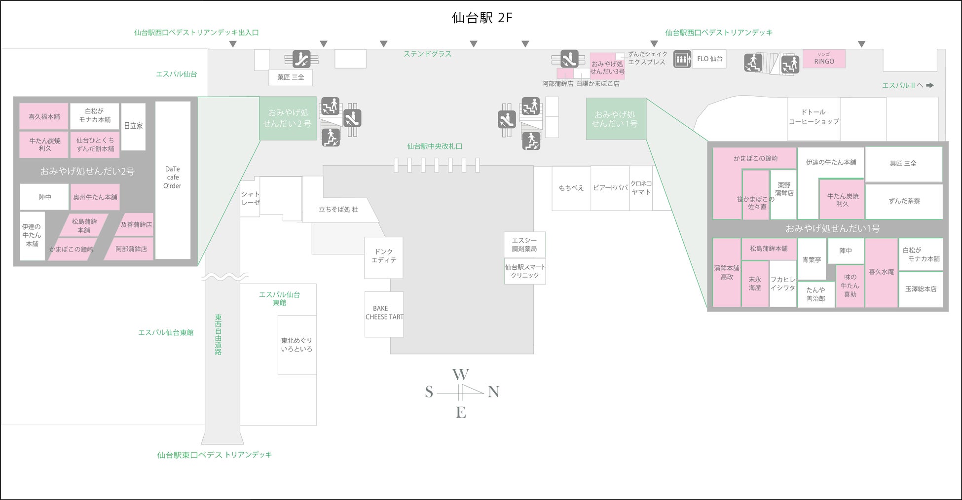 【仙台駅2F】特典対象店舗・特典内容・フロアマップ